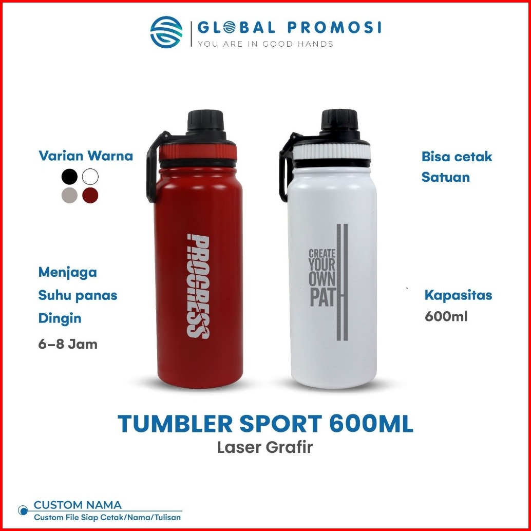 Custom Tumbler Sport 600ml Botol Minum Sepeda Olahraga Souvenir Stainless Steel Tahan Panas Dingin Laser Grafir