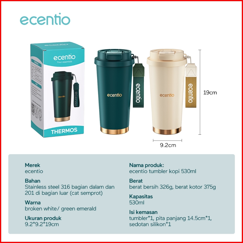 Ecentio Tumbler Minum Stainless 316 Tahan Panas Dingin 24 Jam Tumbler Premium Quality 530ml Botol Minum Aesthetic Premiu