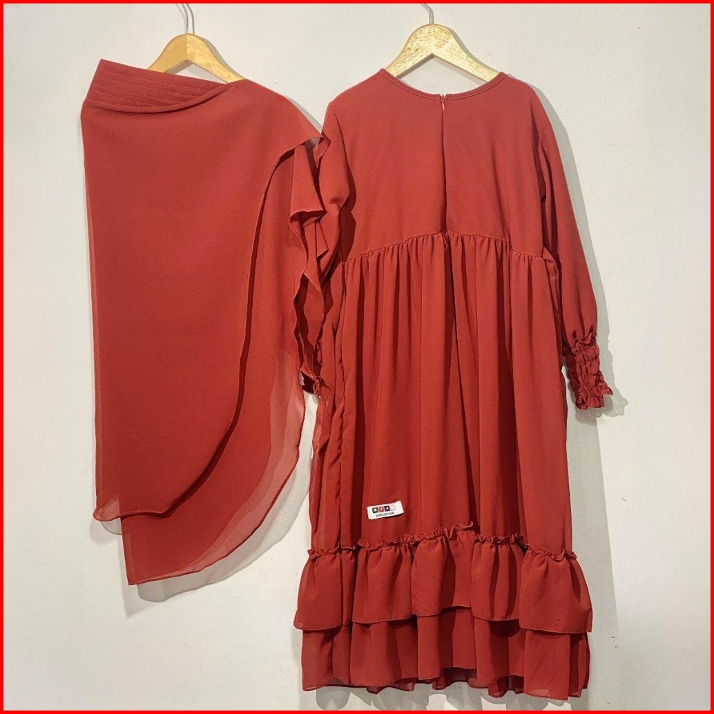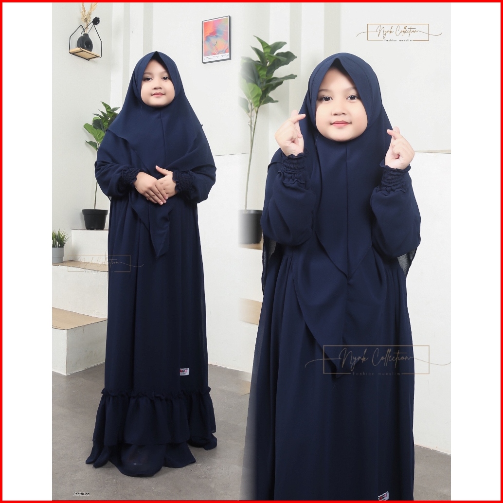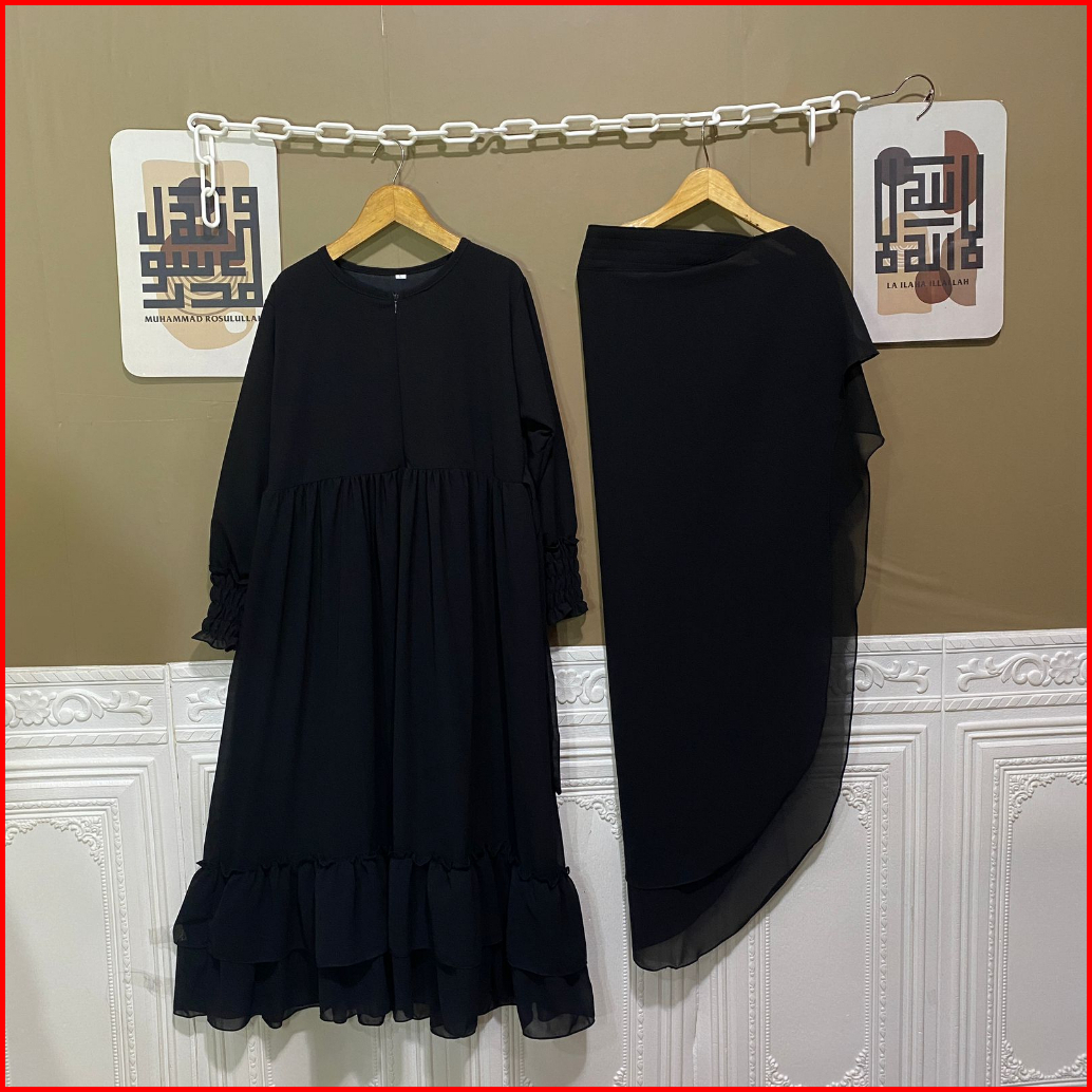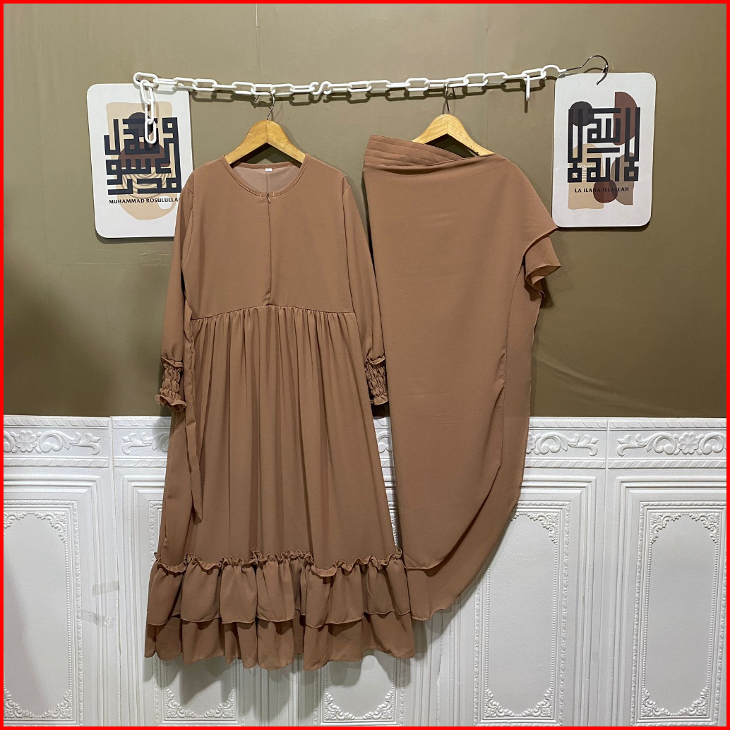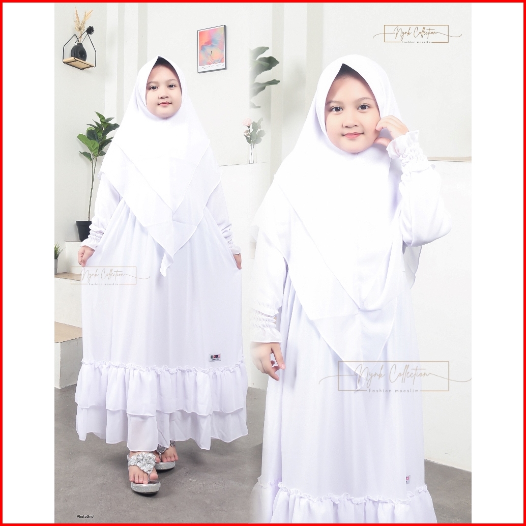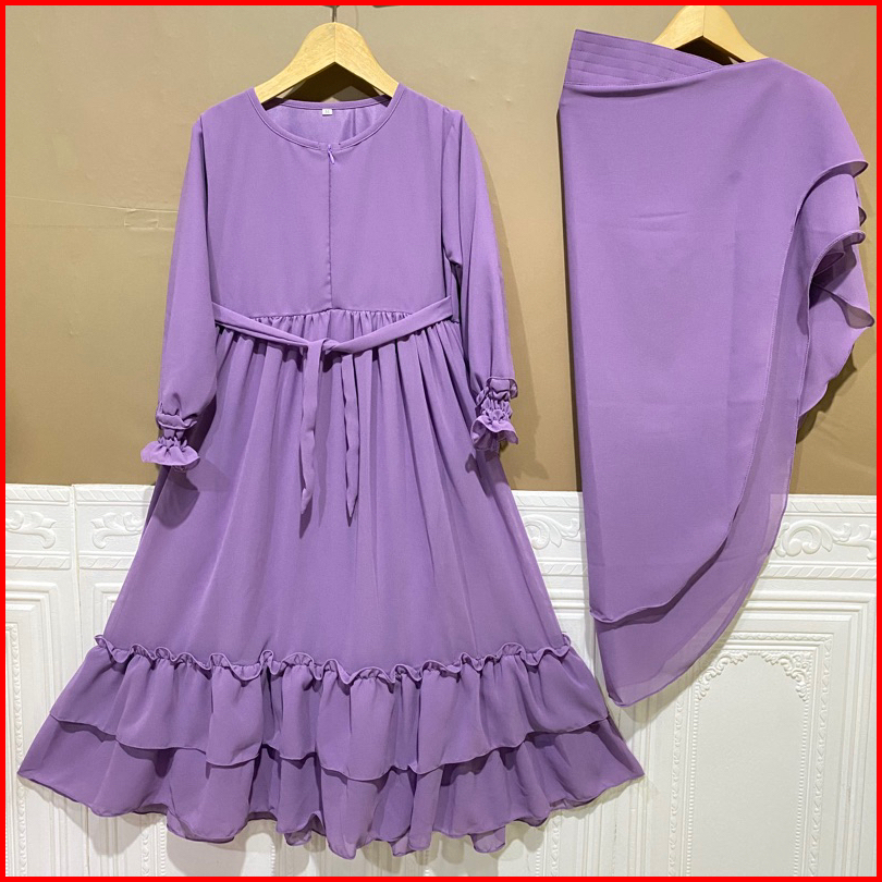 Gamis Anak Set Hijab Bahan Ceruty Babydoll Polos
