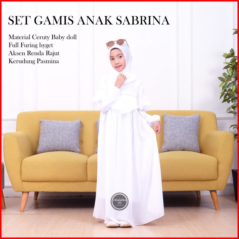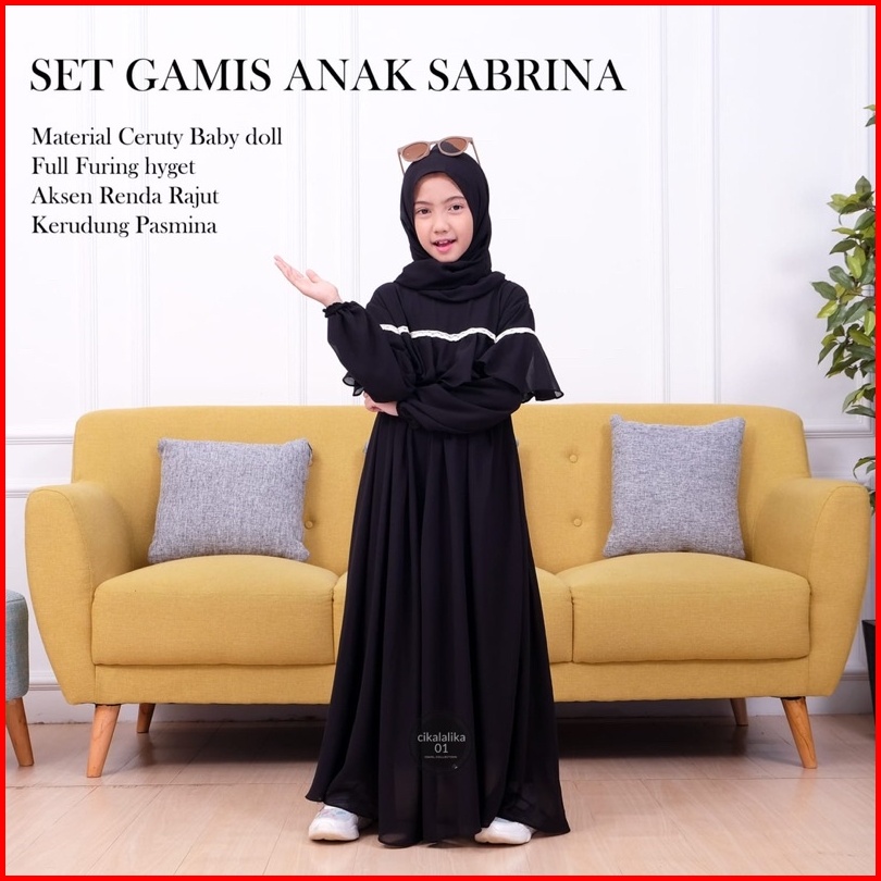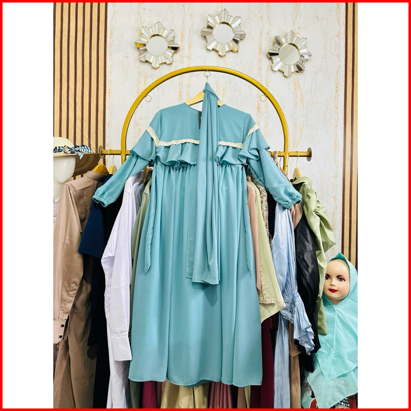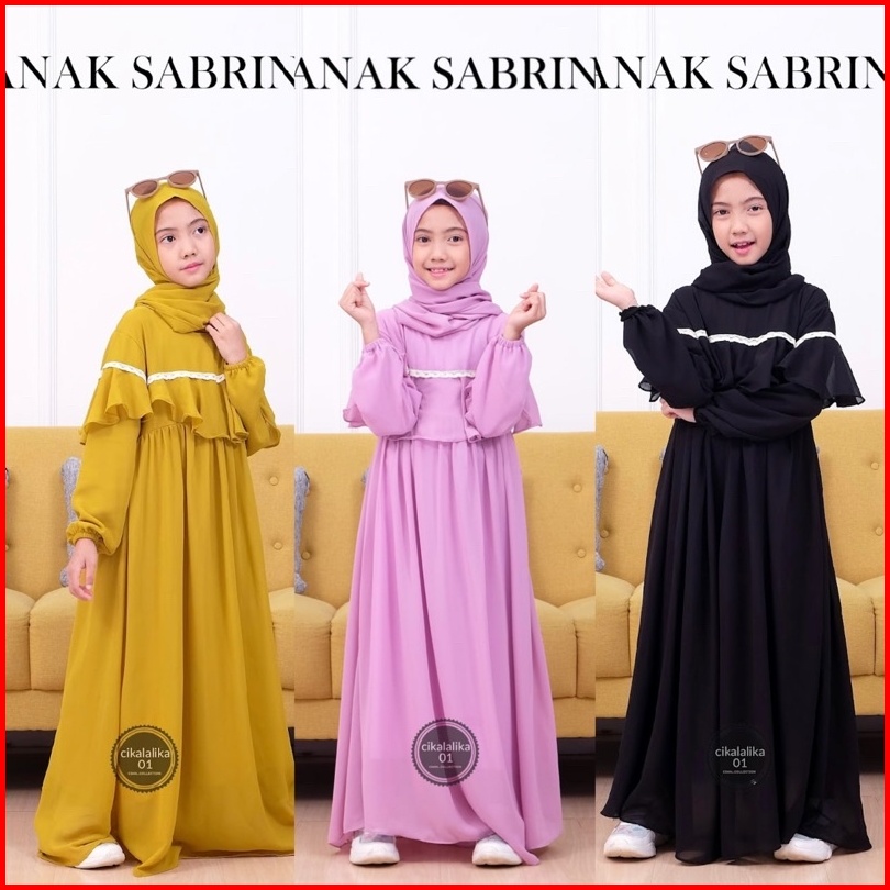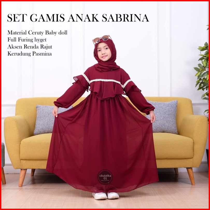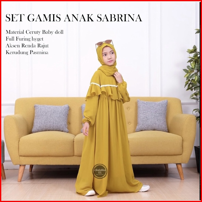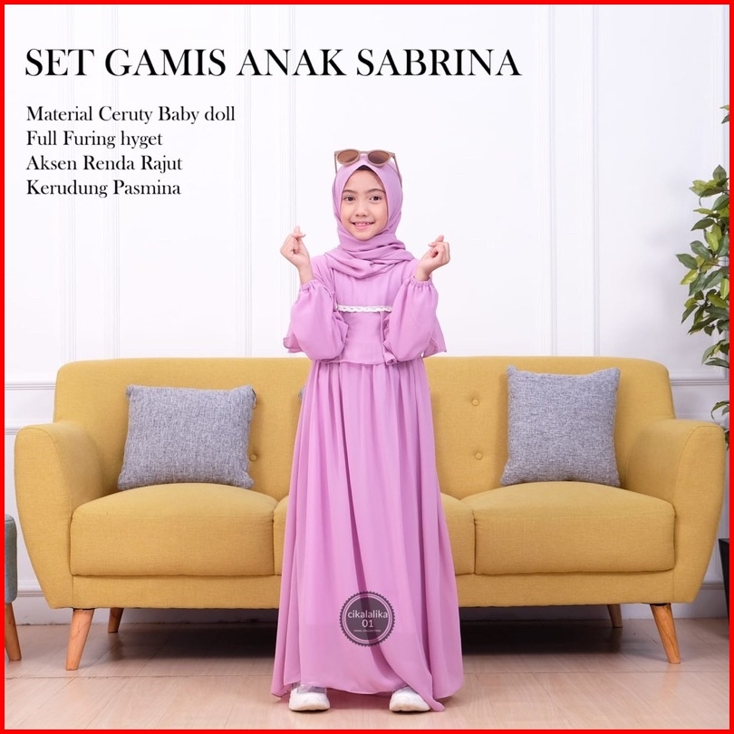 Gamis Anak Perempuan Sabrina Ceruty Renda Dress Set Pasmina Gamis Anak Perempuan Terbaru 2024