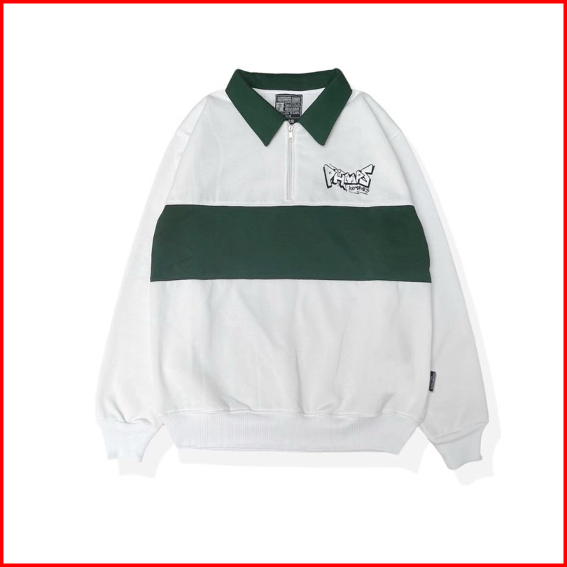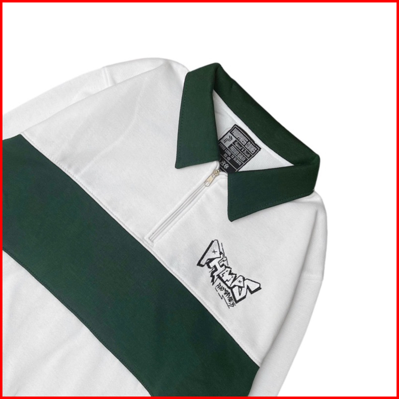 Phompphiess Rugby Vintage Putih Strip Botol Sweater Pria Wanita