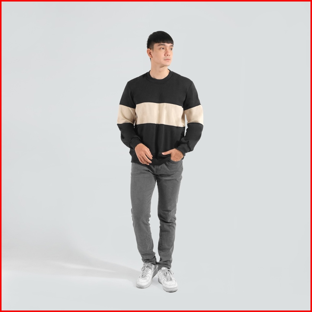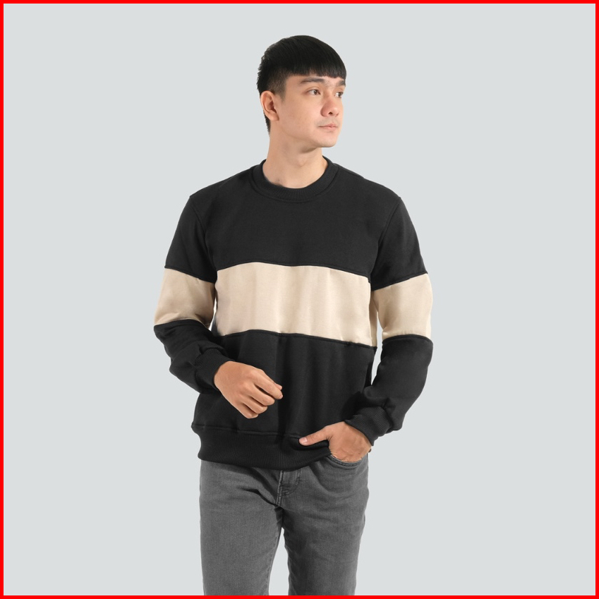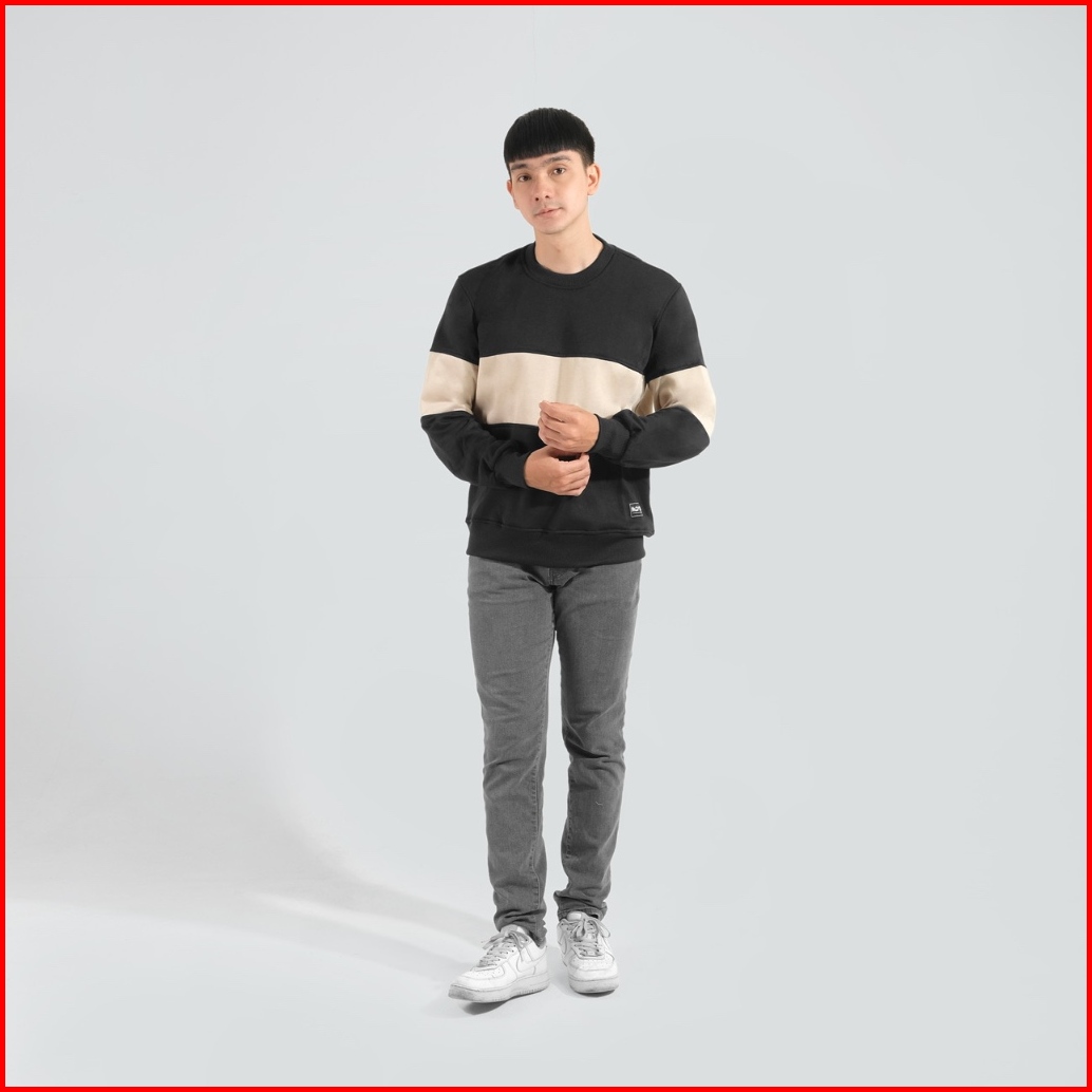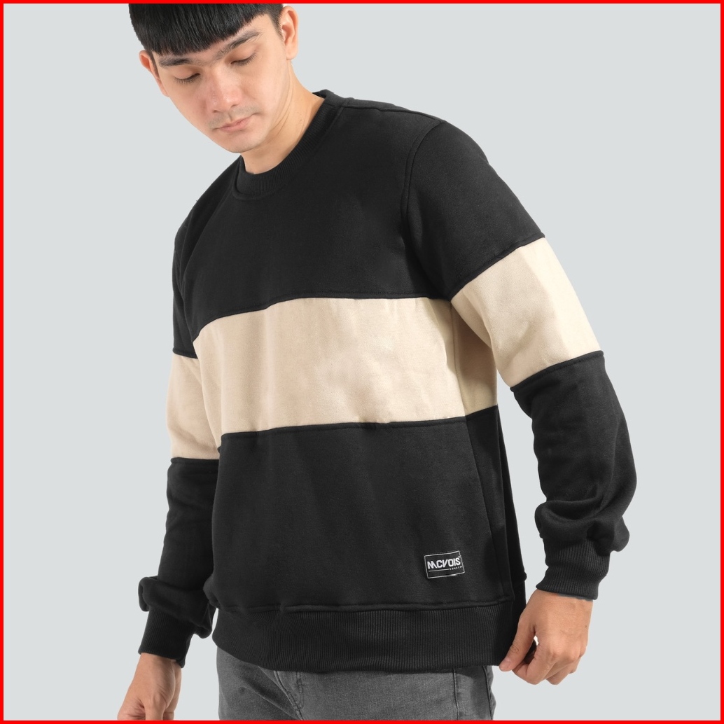 Mcvois Sweater Crewneck Kombinasi 2d Black Line Cream