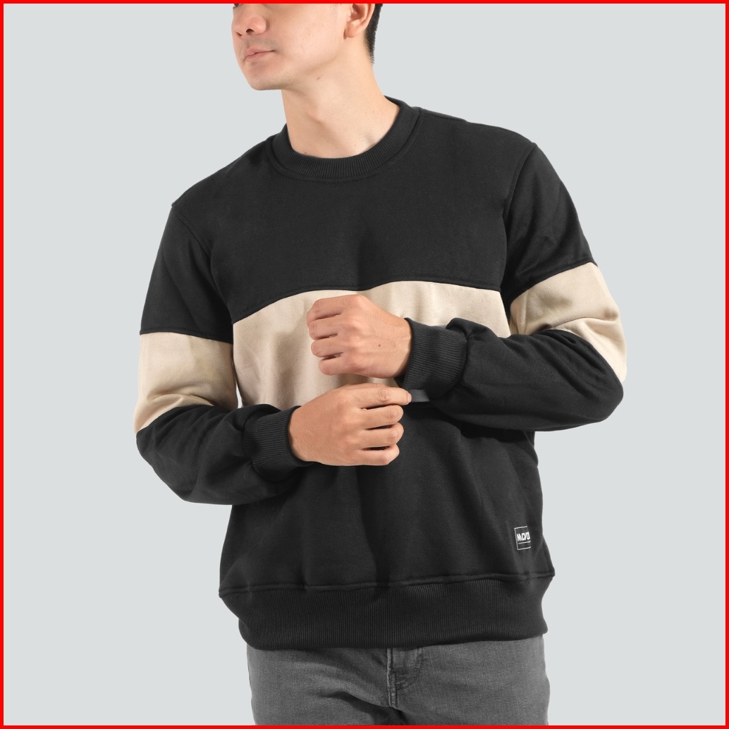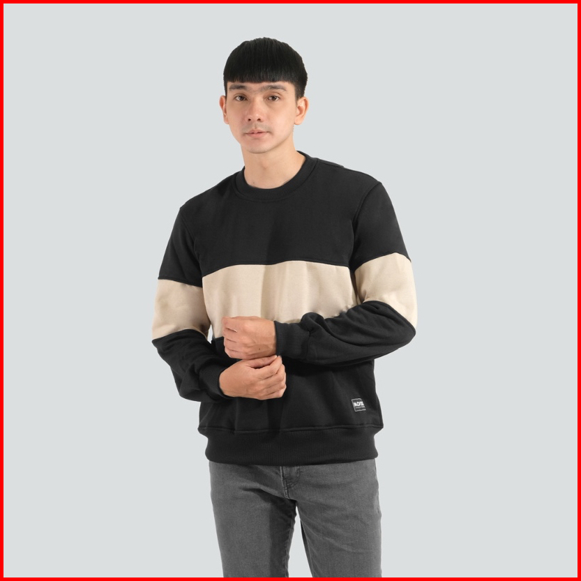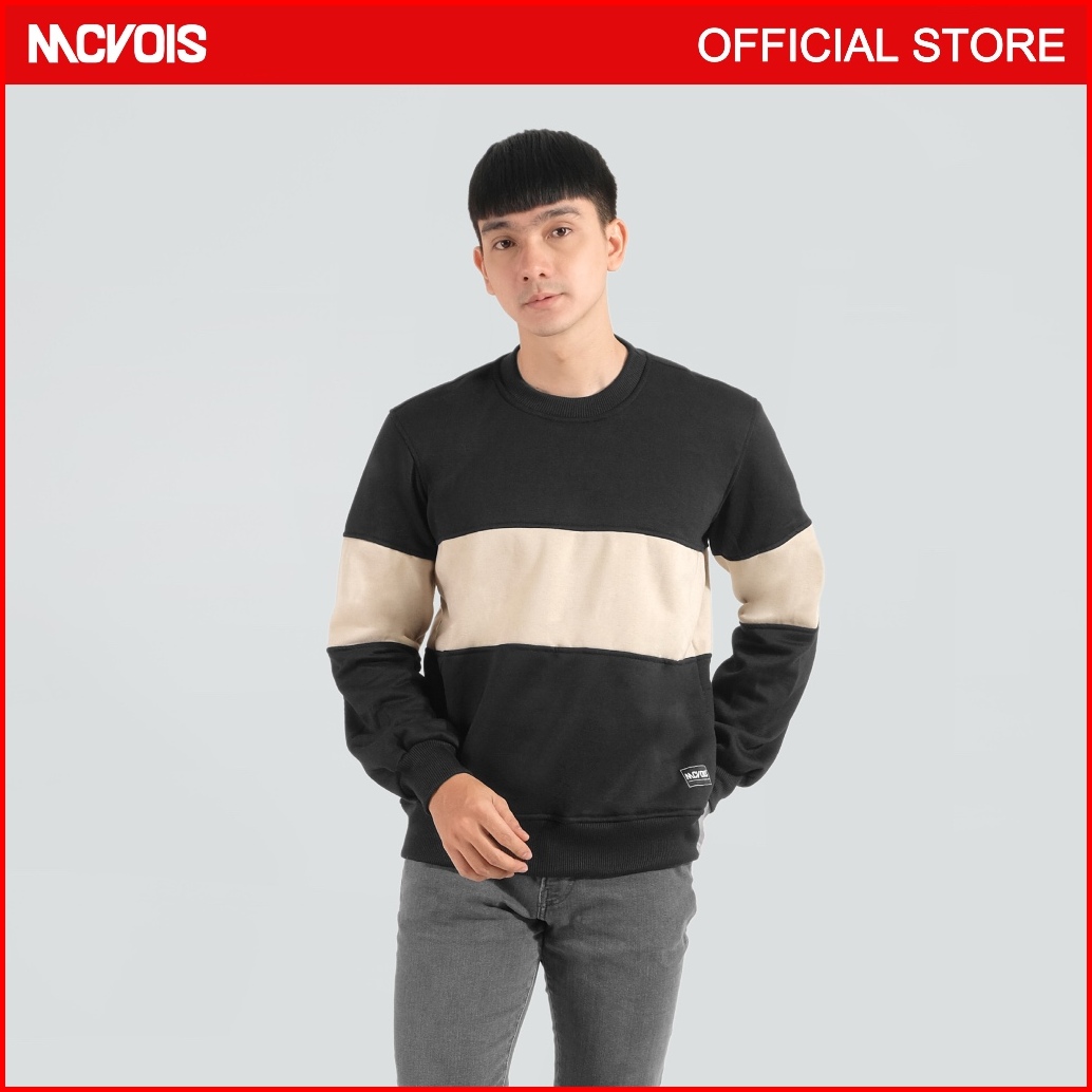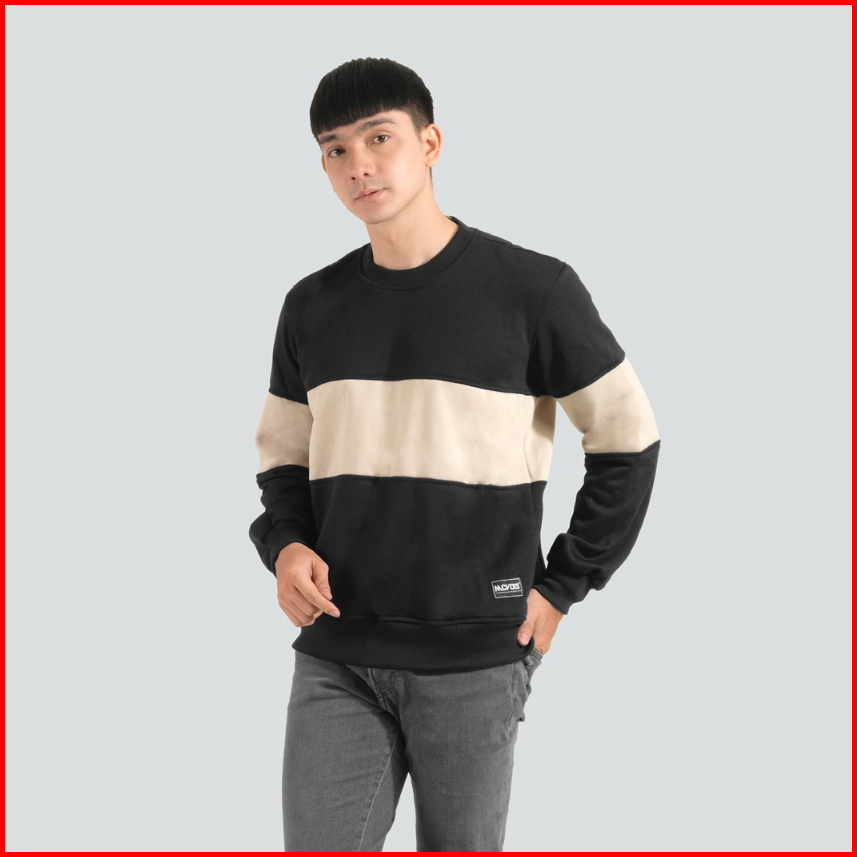 Mcvois Sweater Crewneck Kombinasi 2d Black Line Cream