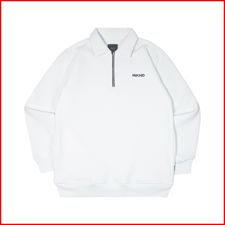 Crewneck Half Zip Sweater Putih Wknd Moony White 1233