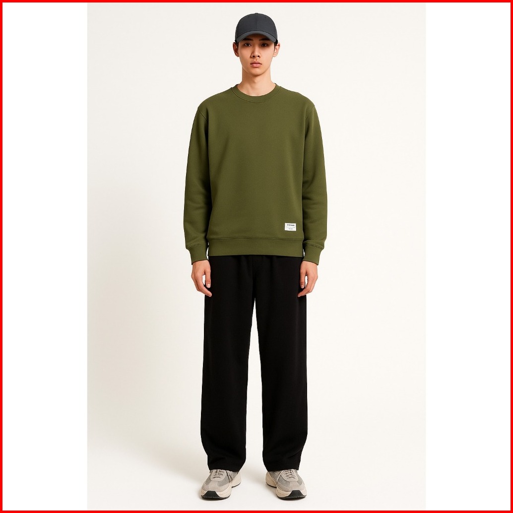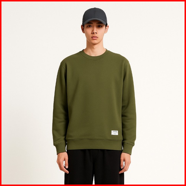 Spasmodic - Sweater Crewneck Pria Wanita Basic Polos Hijau Army