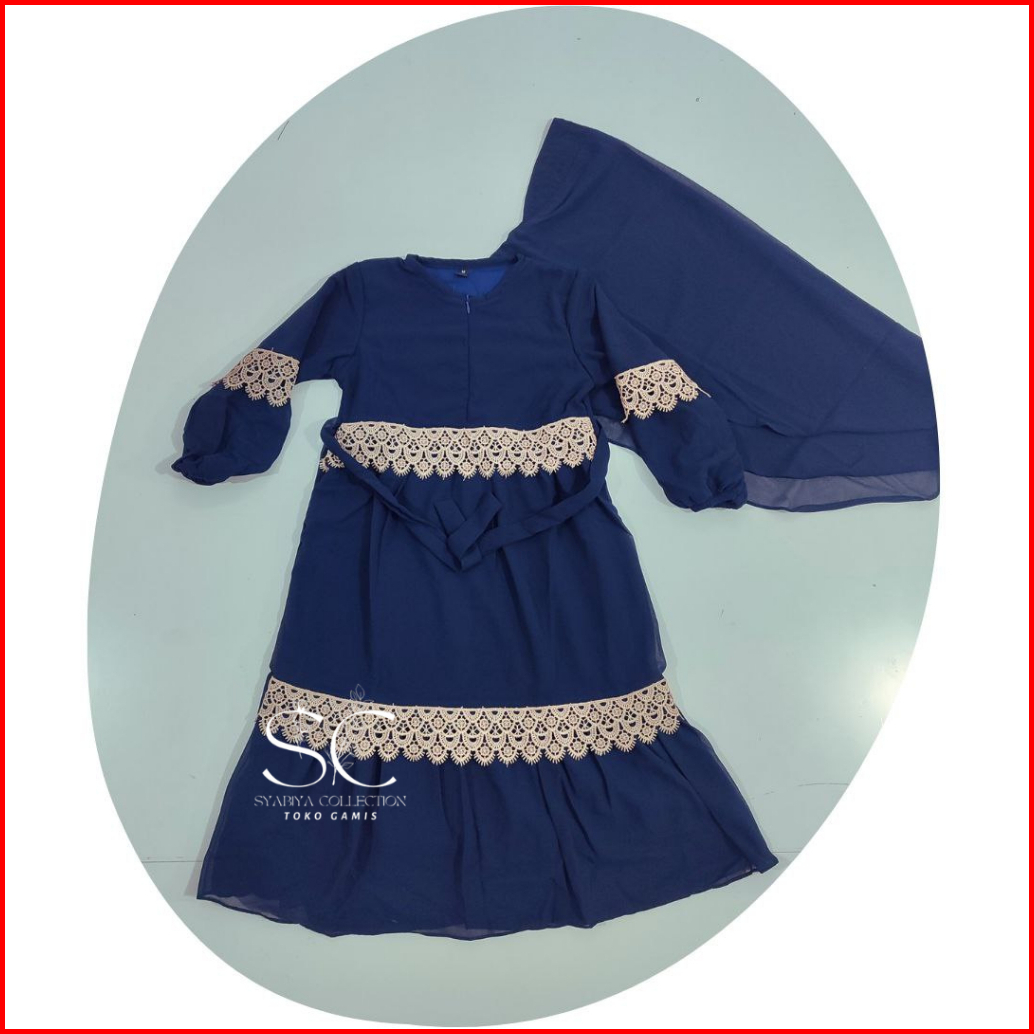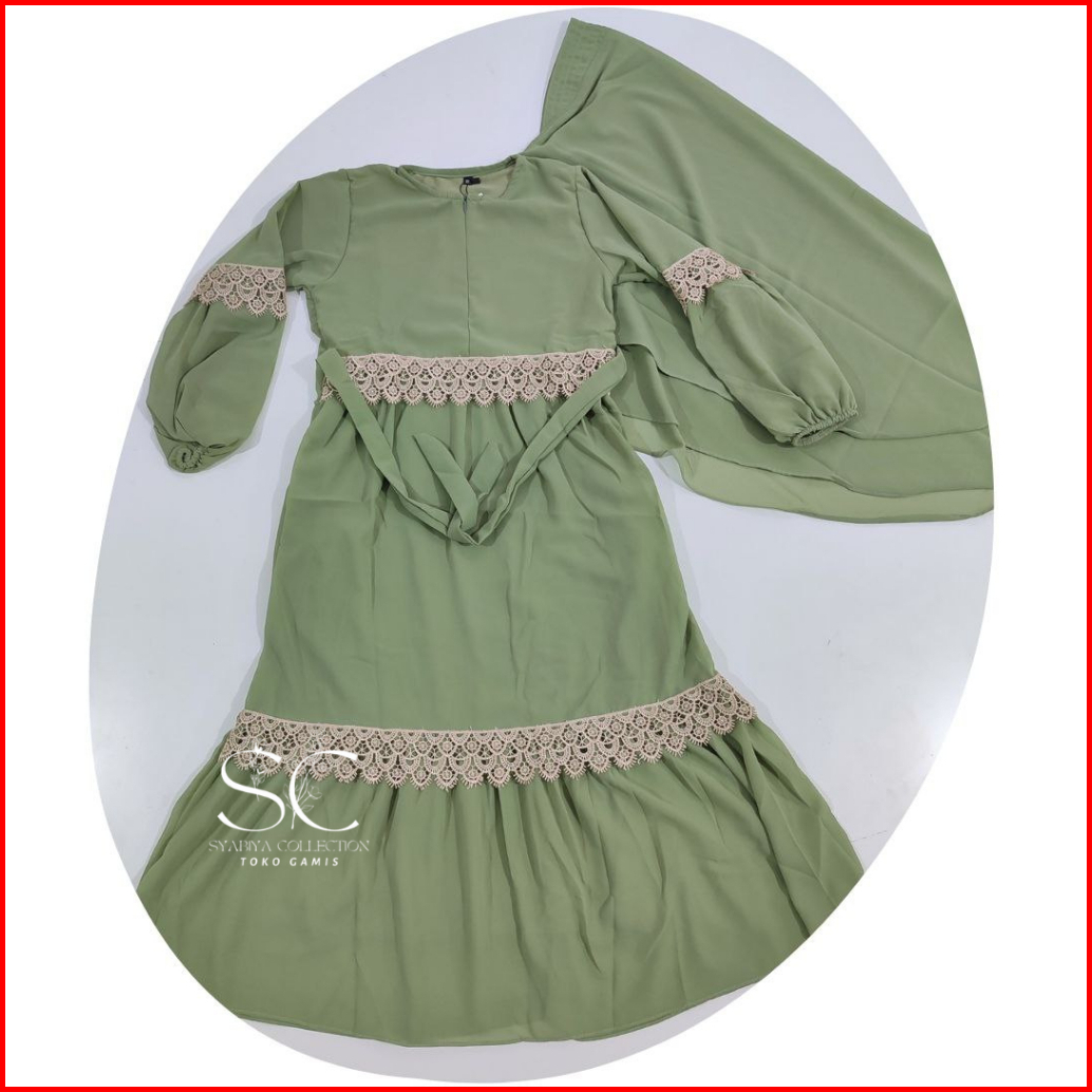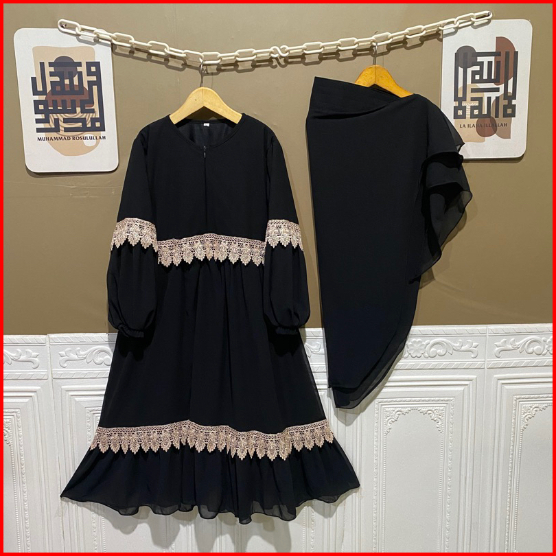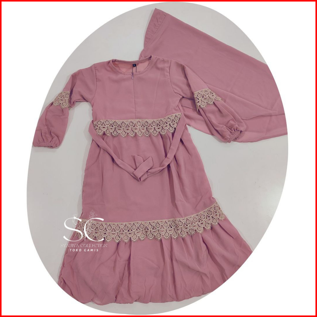 Gamis Ceruty Anak Hijab Putih Lembut Adem Nyaman Dipakai Set Hijab Renda 2-12 Tahun Full Puring