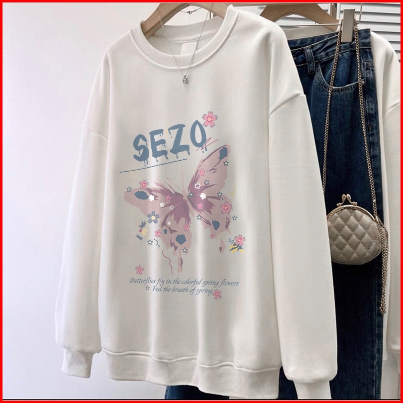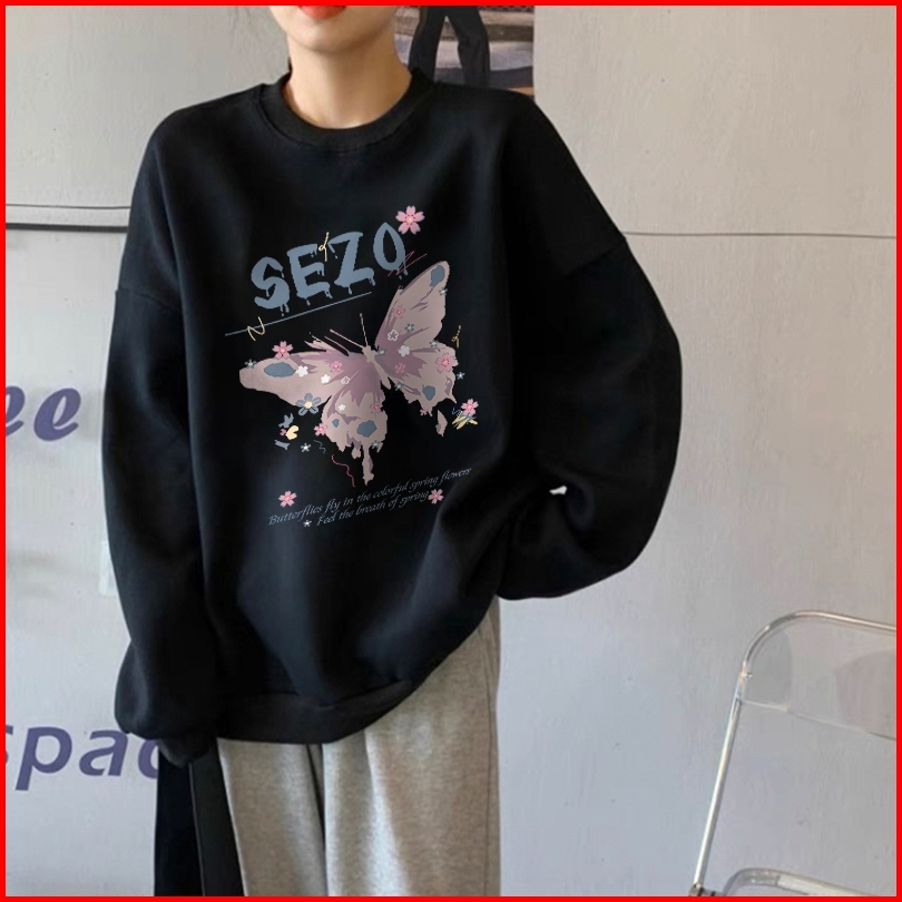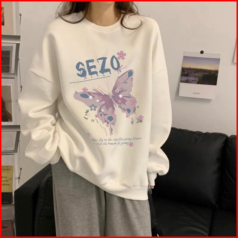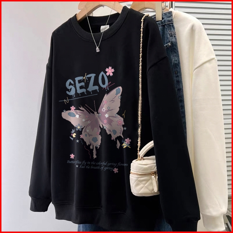 Forteid Cetakan Huruf Kupu-kupu Switer Wanita Oversize Kaos Polamerek Trendi Korean Style Sweater Oversize Crewneck Wani