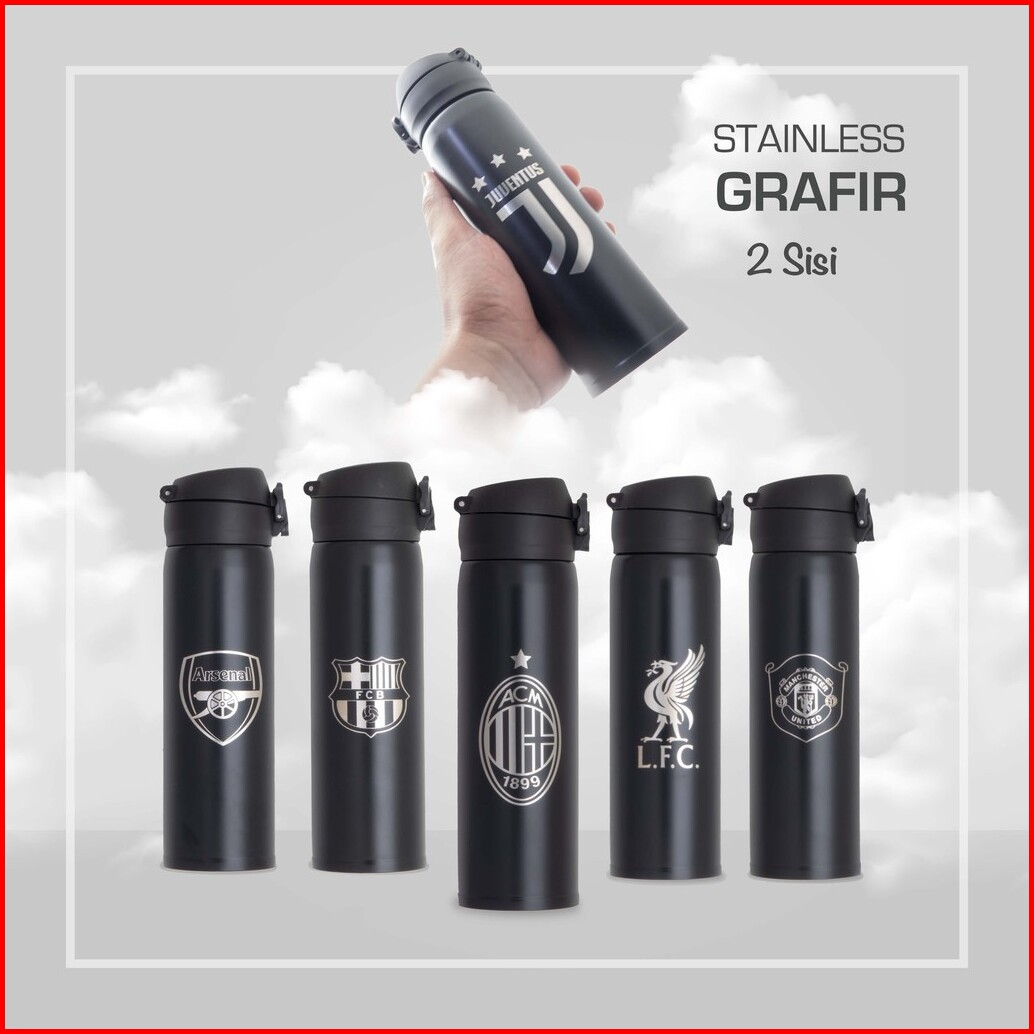 Tumbler Botol Minum Sepakbola Stainless Tahan Panas Atau Dingin Logo Laser Grafir 2 Sisi