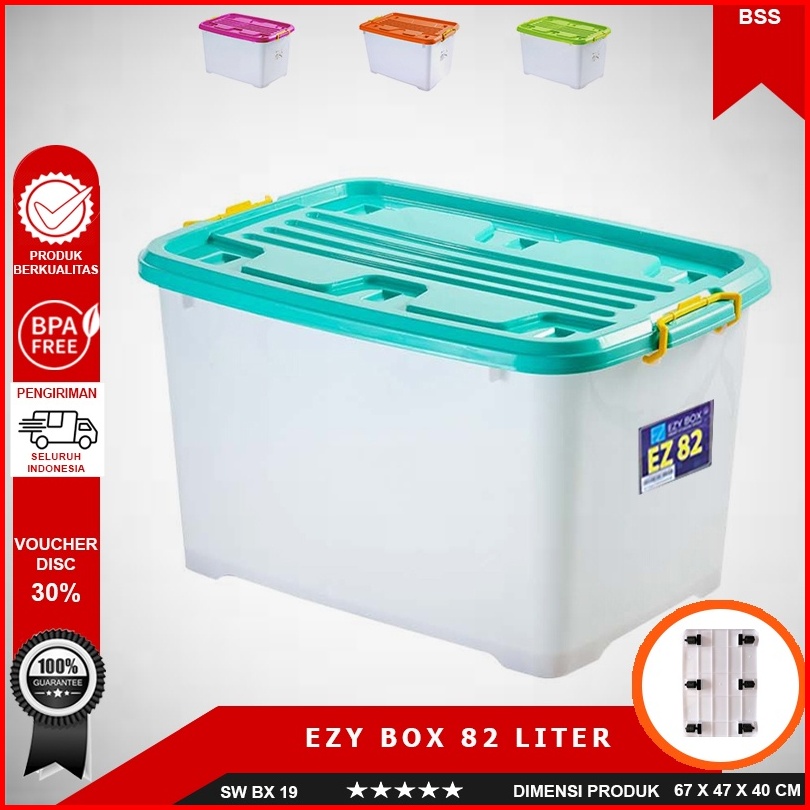 Container Box 82 Liter Jumbo Besar Ezy Box Tempat Penyimpanan Serbaguna Bisa Ditumpuk Tebal Kokoh Kotak Storage