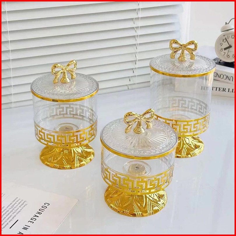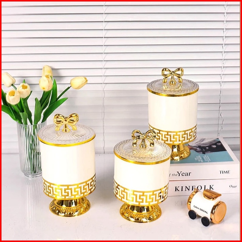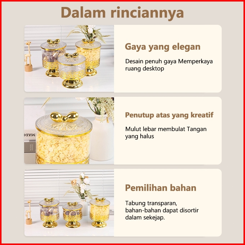 Toples Toples Guci Penyimpanan Bening Rumah Meja Kopi Meja Permen Meja Atas Kotak Penyimpanan Retro Mewah Kotak Penyimpa