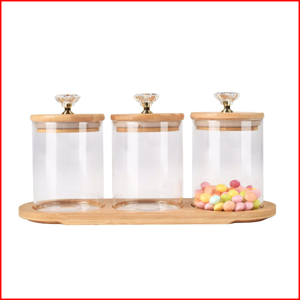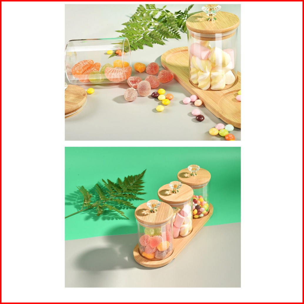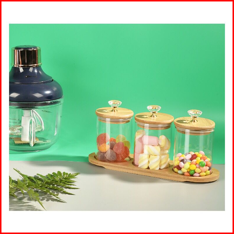 Me Tempat Bumbu Candy Jar Toples Kaca Diamond 3in1 Dengan Nampan Kayu