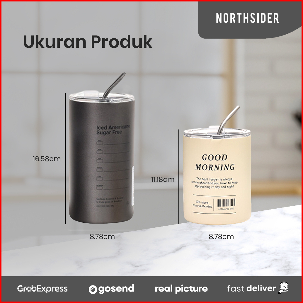 Tumbler Kopi Coffee Mug Double Wall Stainless Straw Korea Rh-7