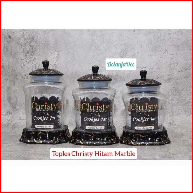 Toples Kaca Christy Set 3 Pcs Toples Kue Kering Original
