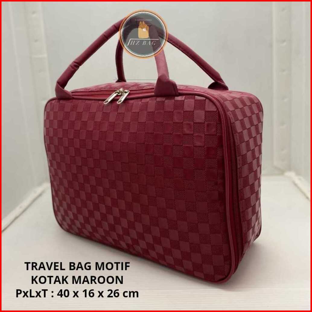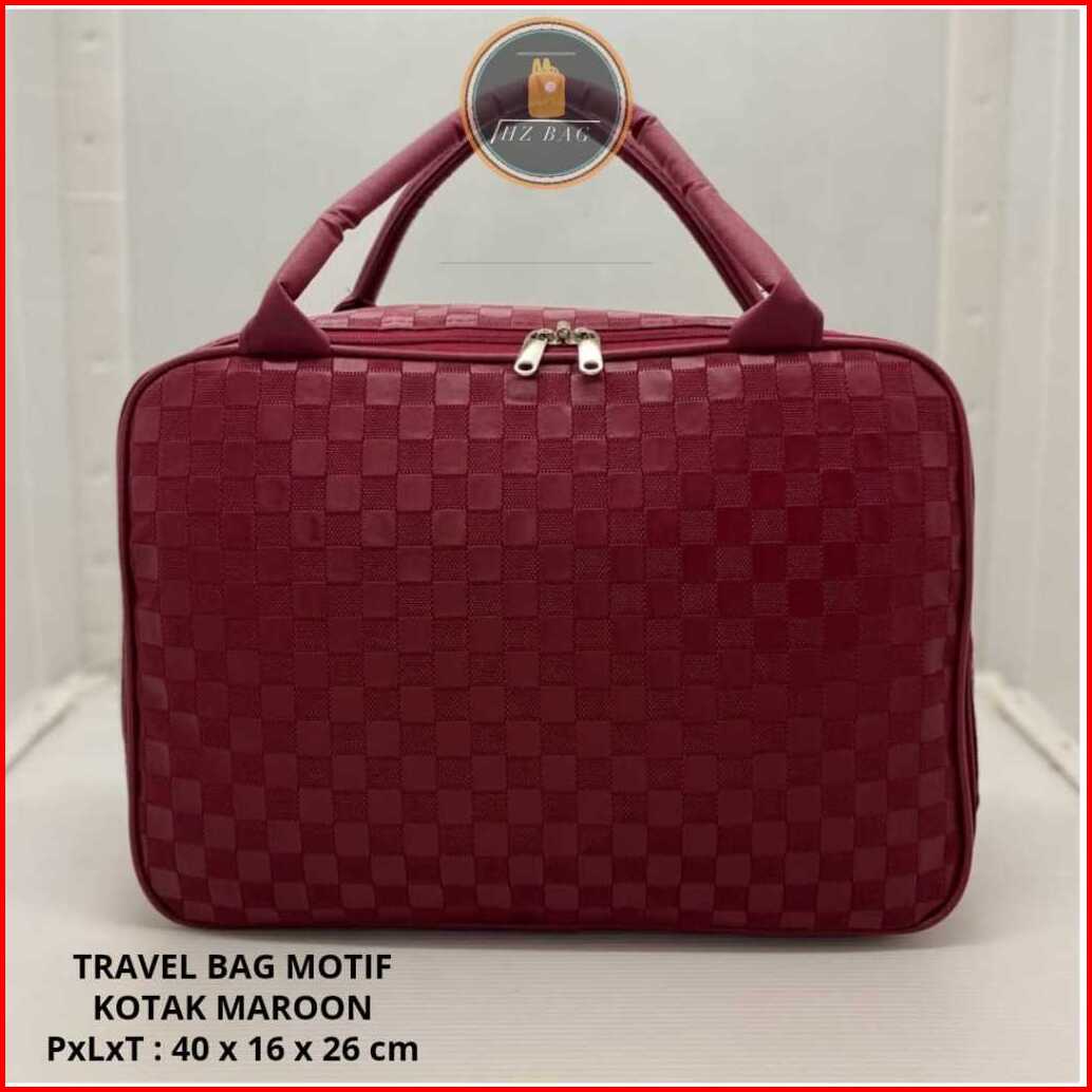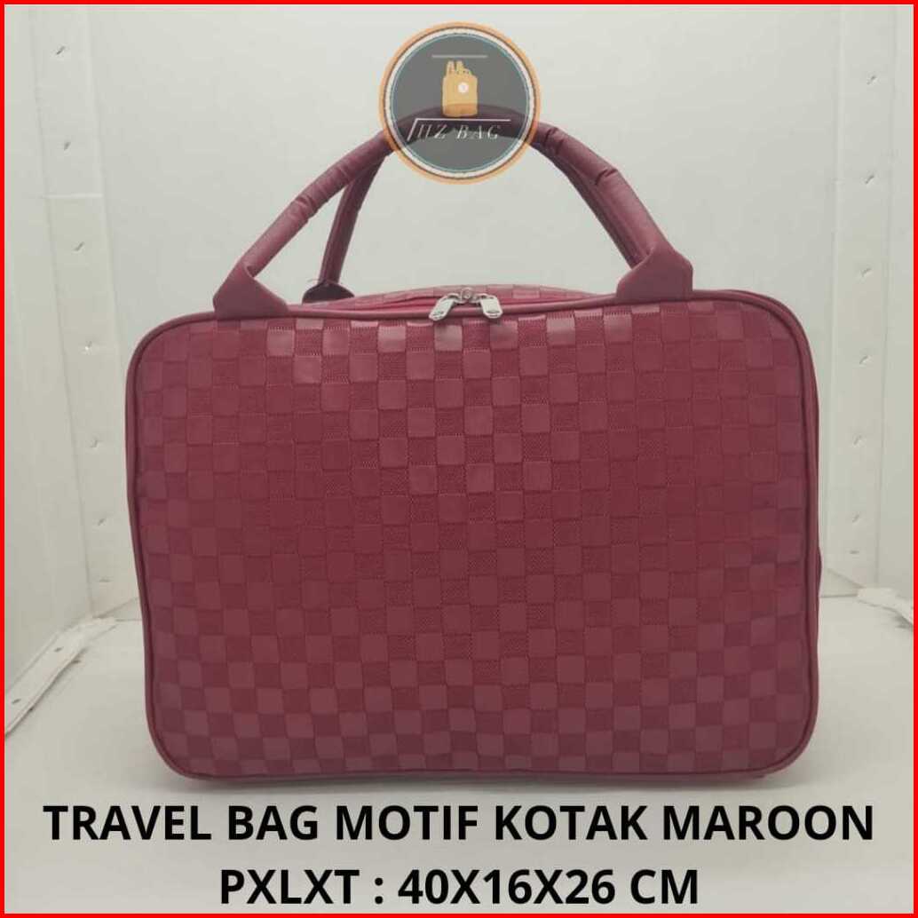 Travel Bag Kulit Waterproof Motif Kotak Warna Maroon Tas Travel Bag Catur Tas Koper Tas Travelling Tas Pakaian