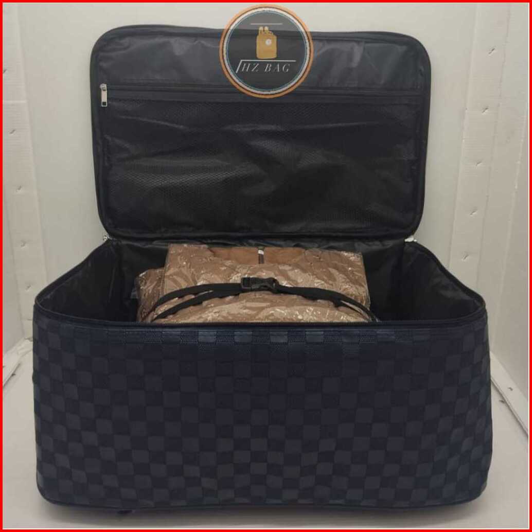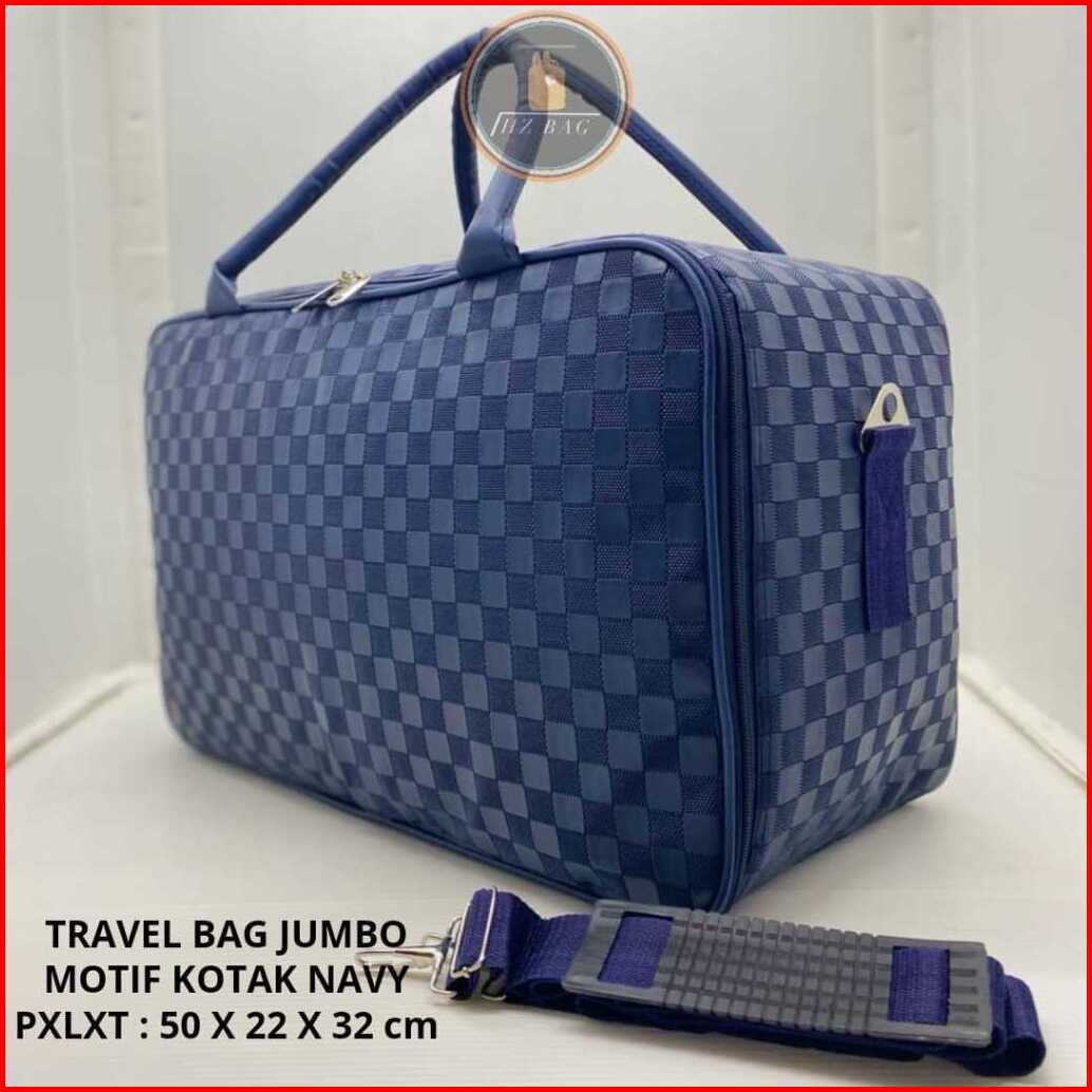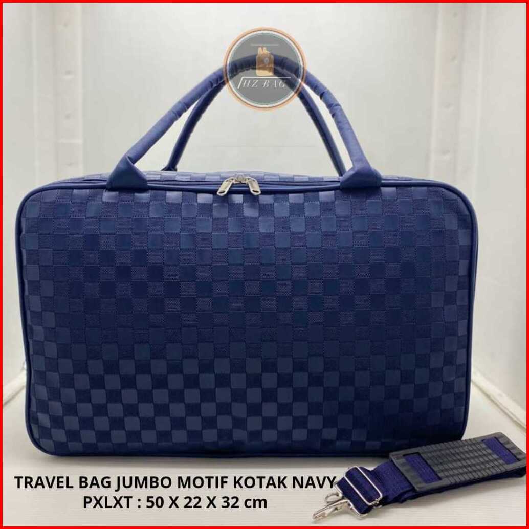 Travel Bag Jumbo Kulit Waterproof Motif Kotak Warna Navy Tas Travel Bag Catur Tas Koper Tas Travelling Tas Pakaian