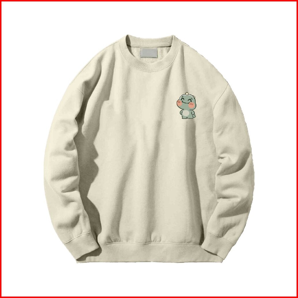 Crewneck Sweaterwanita Jyb Oversize Smile Dino Sablon Size M-xxl Unisex Pria Wanita
