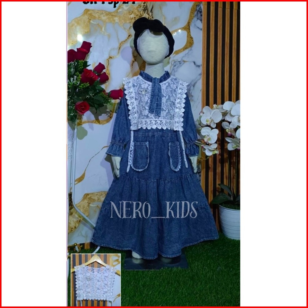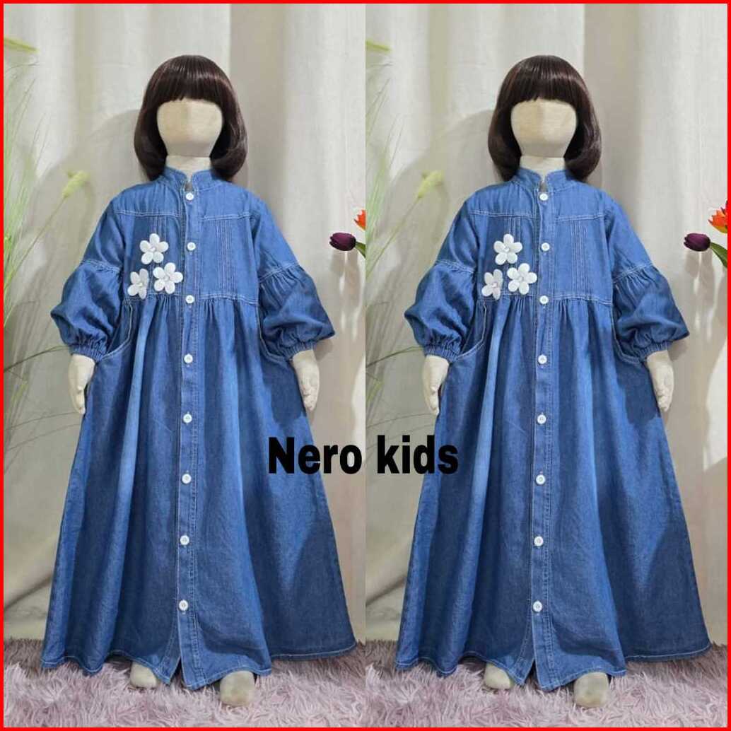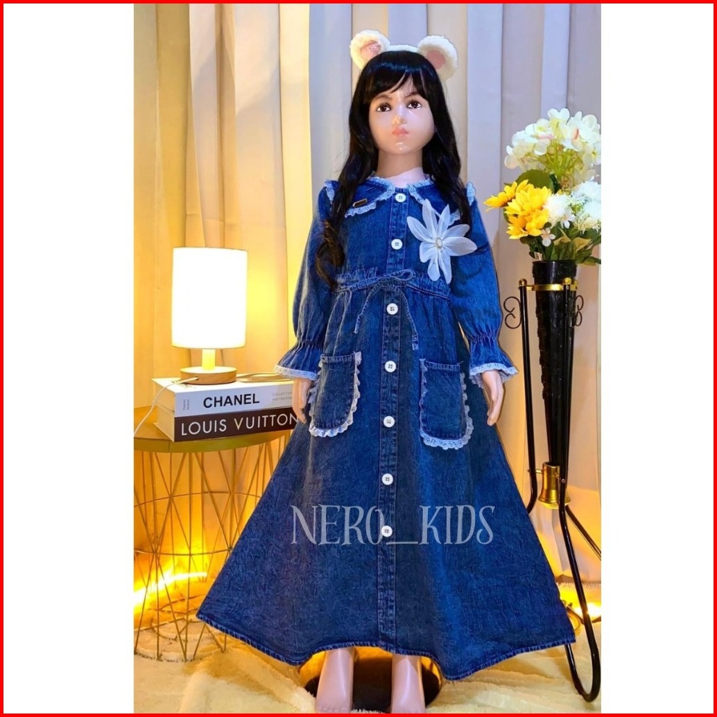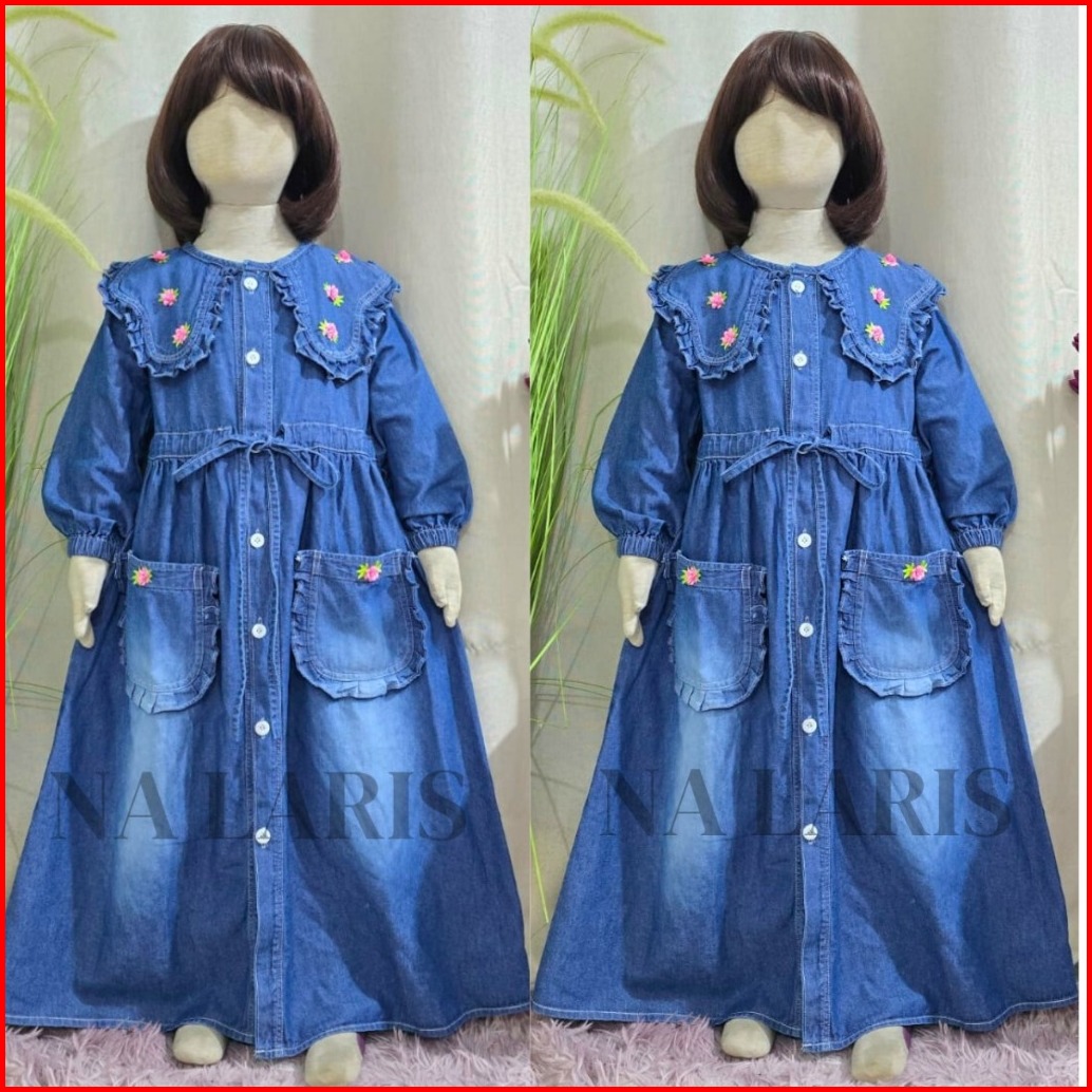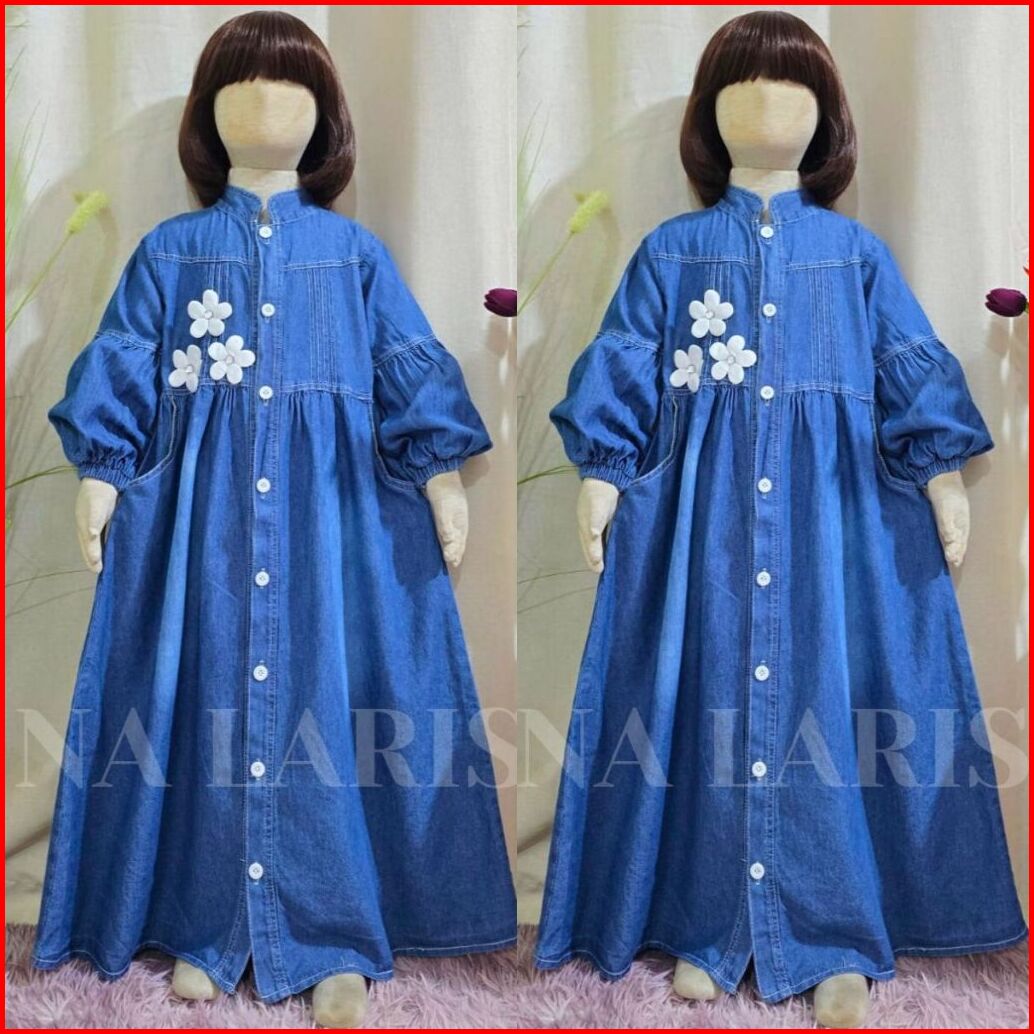 Gamis Mewah Gamis Anak Full Jeans Kancing Aktif Motif Bunga Usia 3 - 10 Tahun Gamis Viral 2025