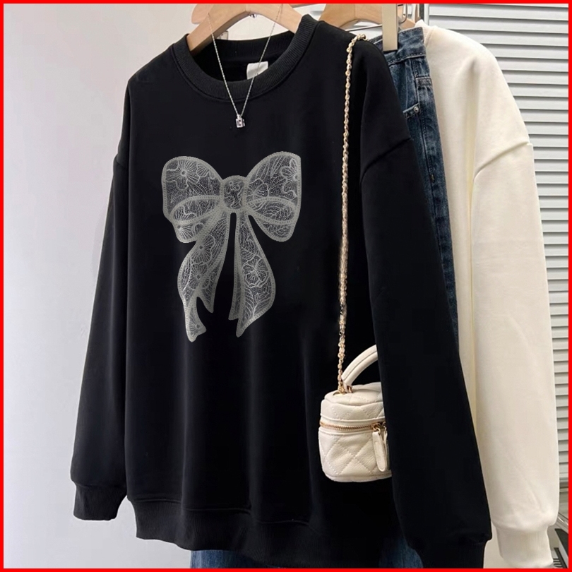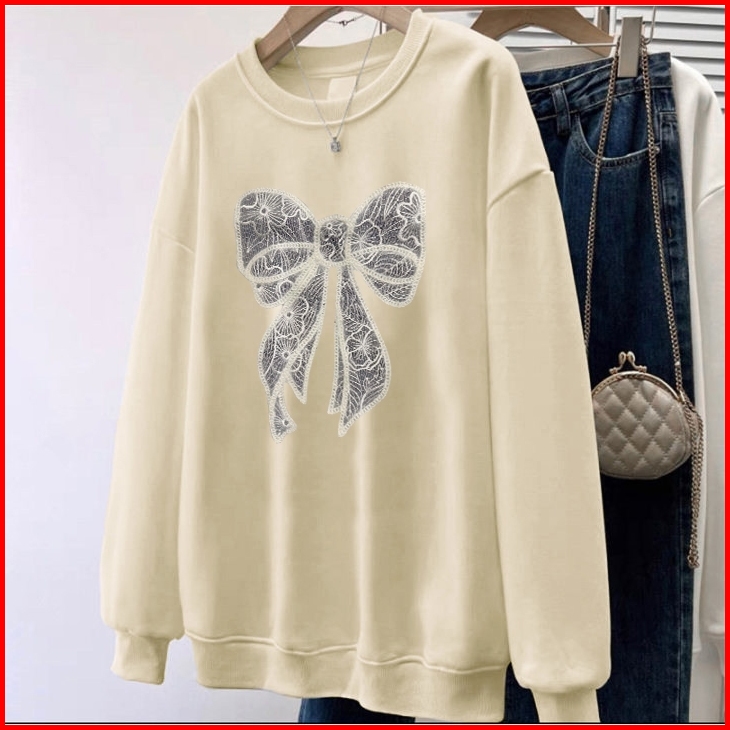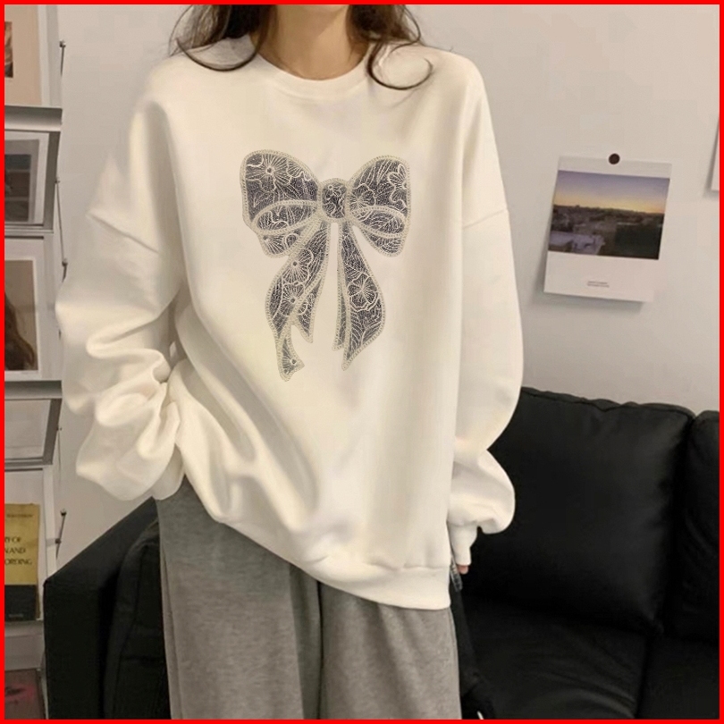 Forteid Sweater Lengan Panjang Oversize Street Style Korean Style Switer Wanita Oversize Pola Kupu-kupu Korean Style Swe