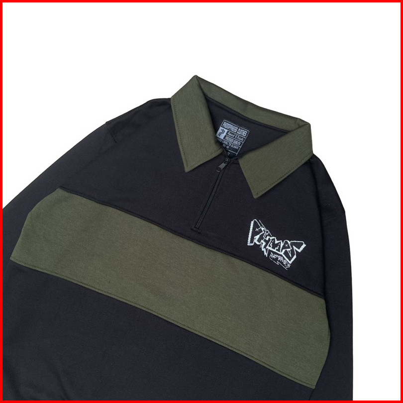 Phompphiess Sweater Rugby Vintage Hitam Strip Army Pria Wanita
