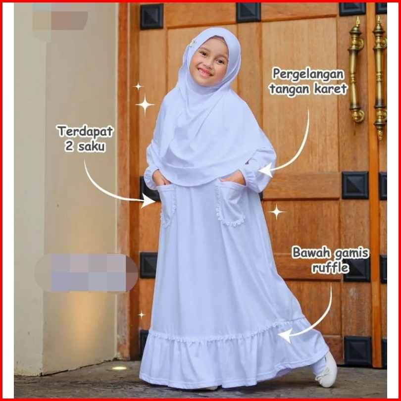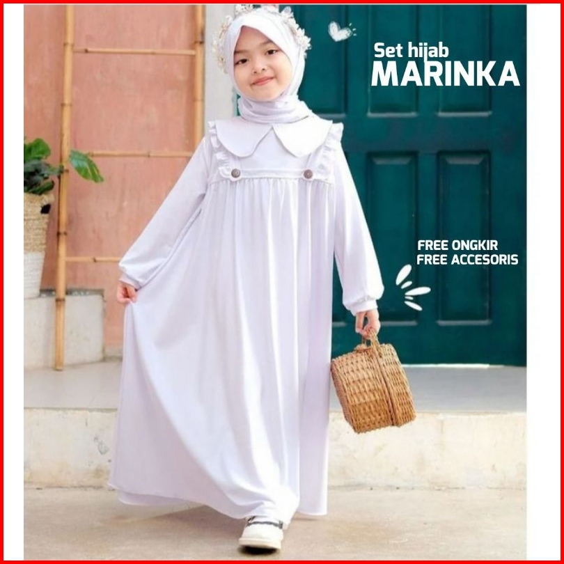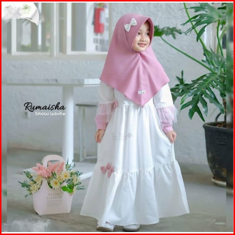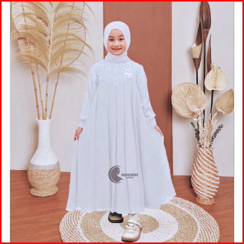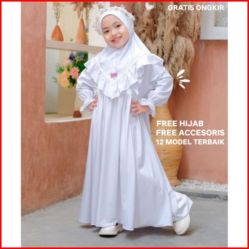 Baju Gamis Anak Perempuan Free Hijab 1-13 Tahun Warna Putih Polos Hitam Brukat Kondangan Pesta Anak