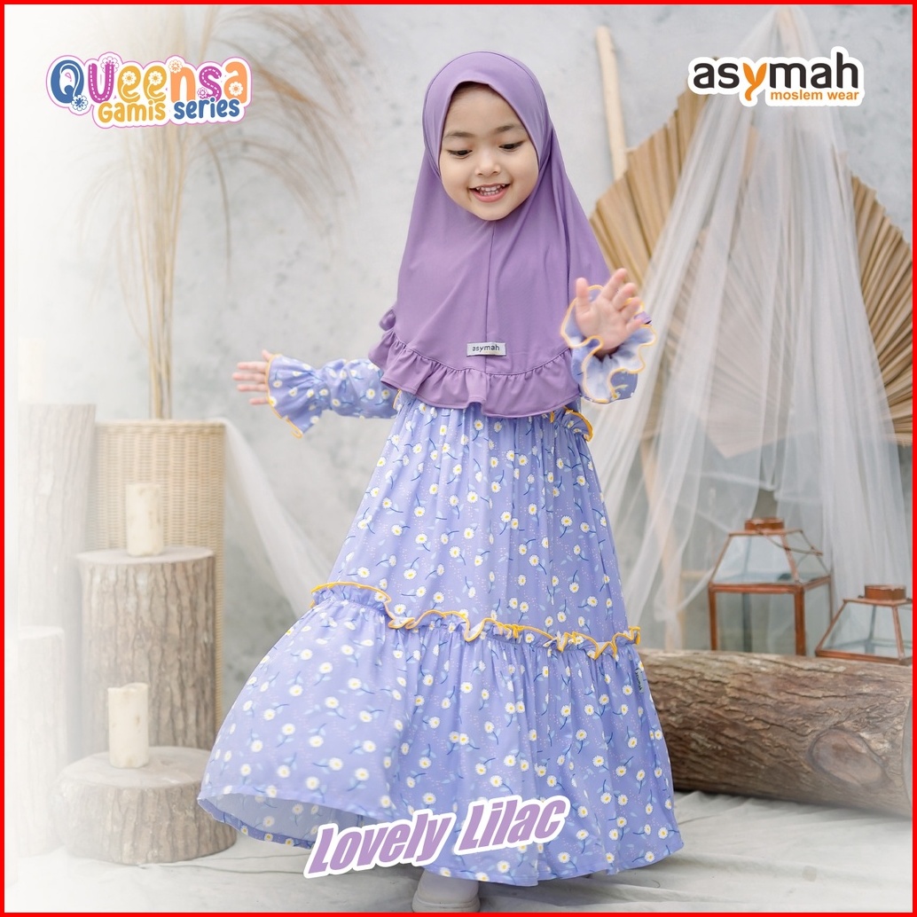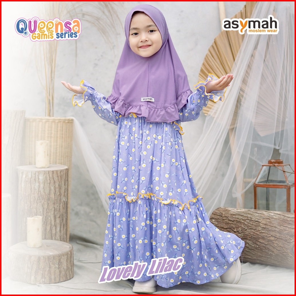 - Gamis Anak Perempuan Rayon Set Jilbab Warna Lilac - Queensa