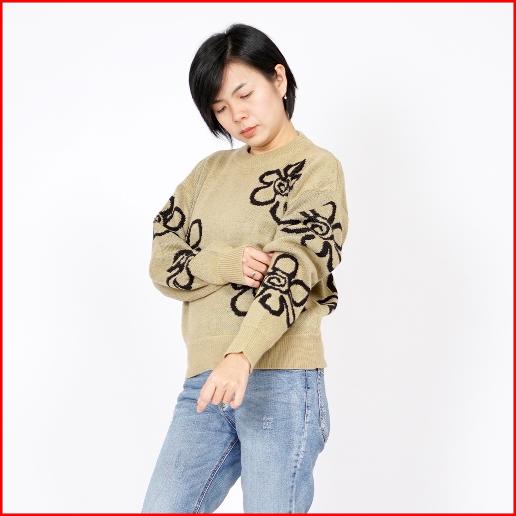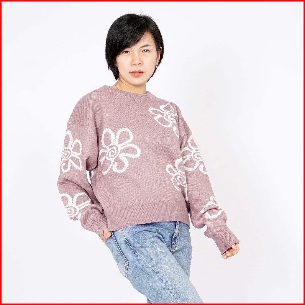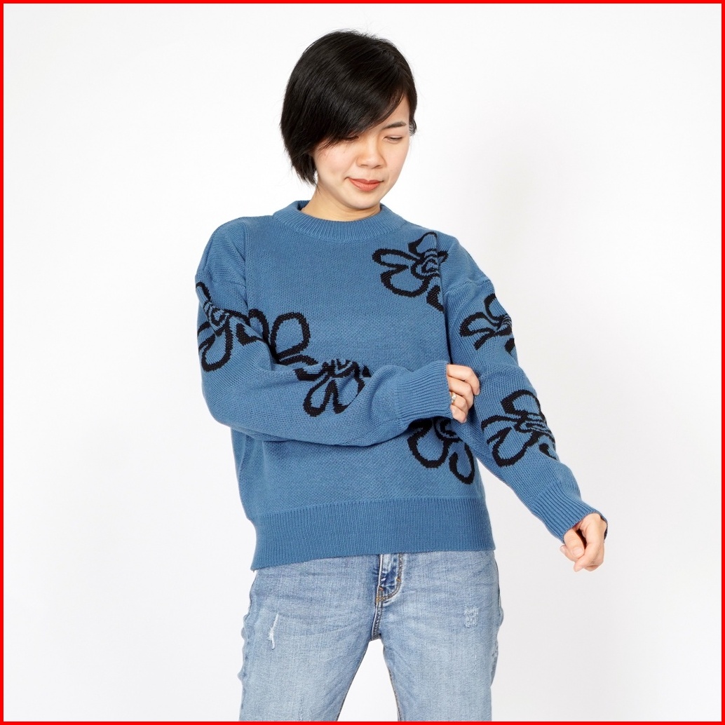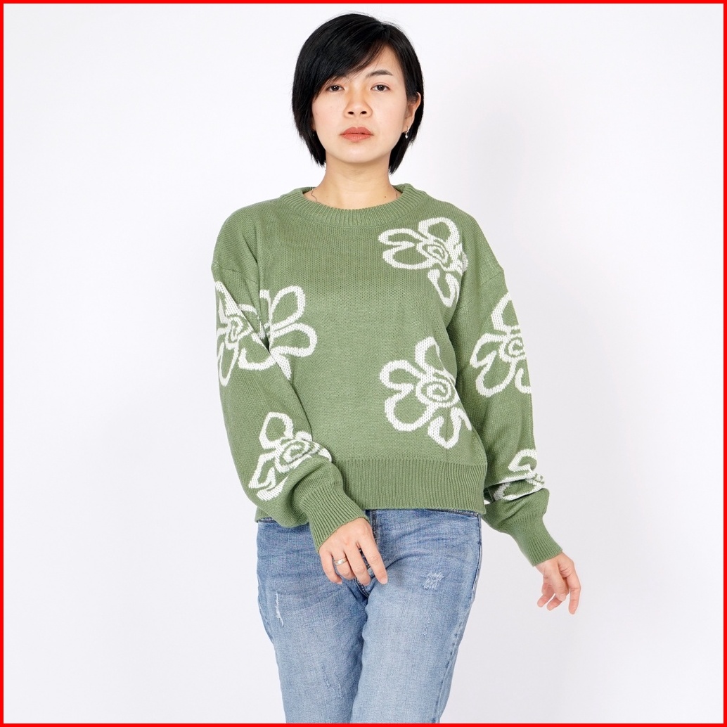 Okechuku Yuni Sweater Rajut Wanita Motif Bunga Switer Sweter Korea