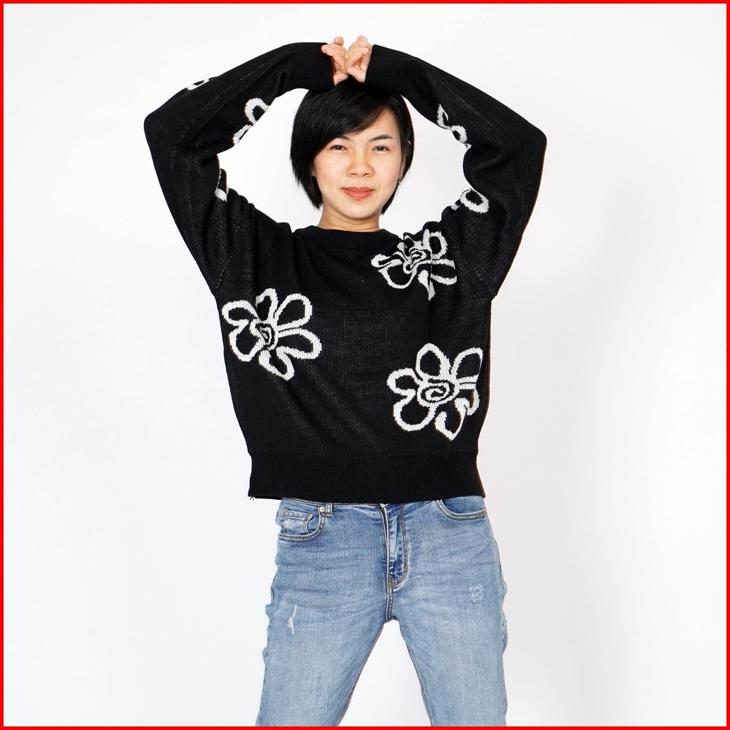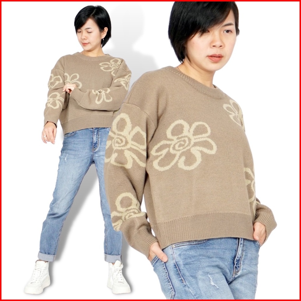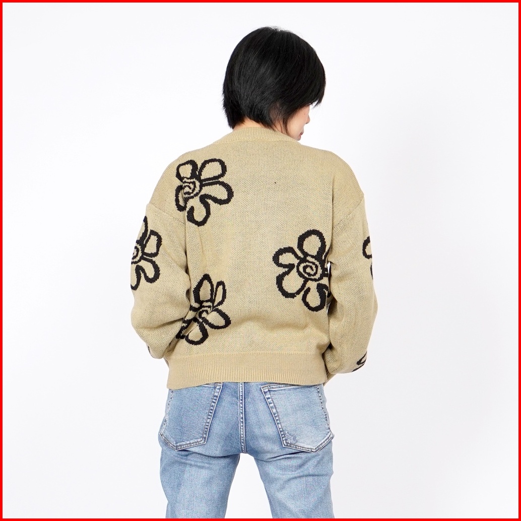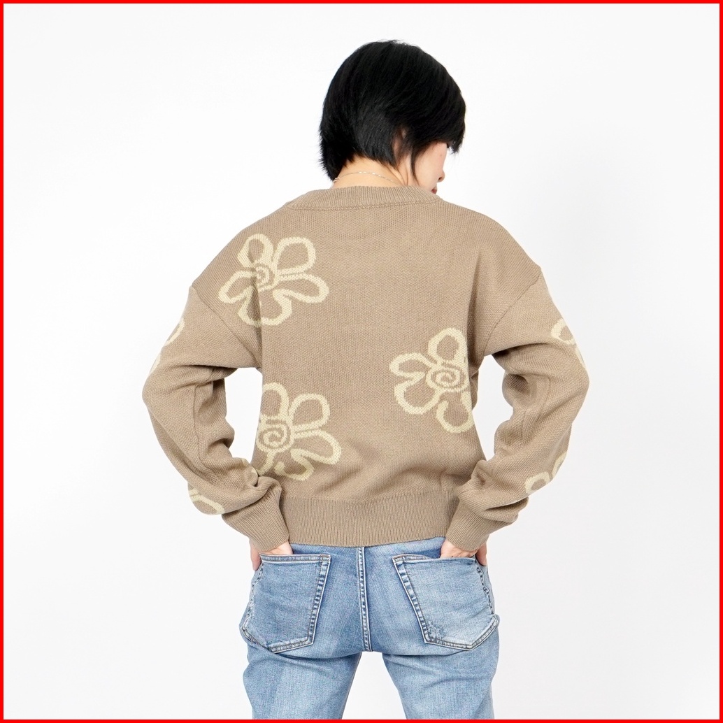 Okechuku Yuni Sweater Rajut Wanita Motif Bunga Switer Sweter Korea