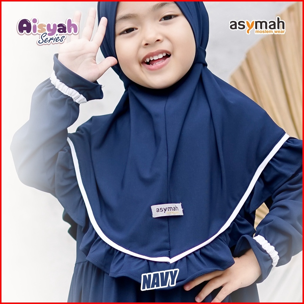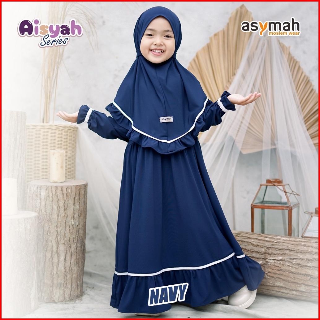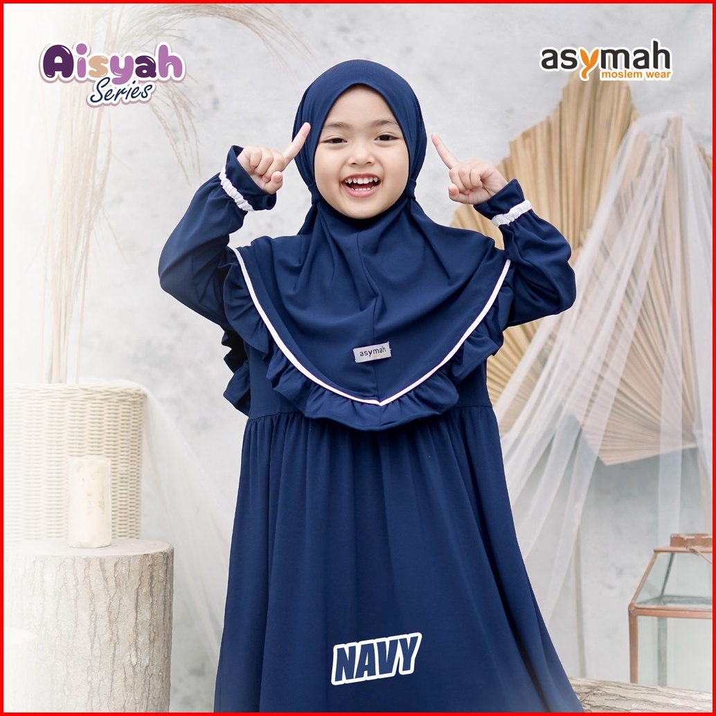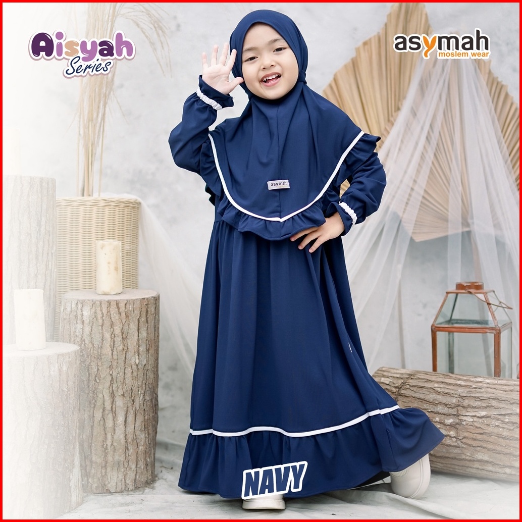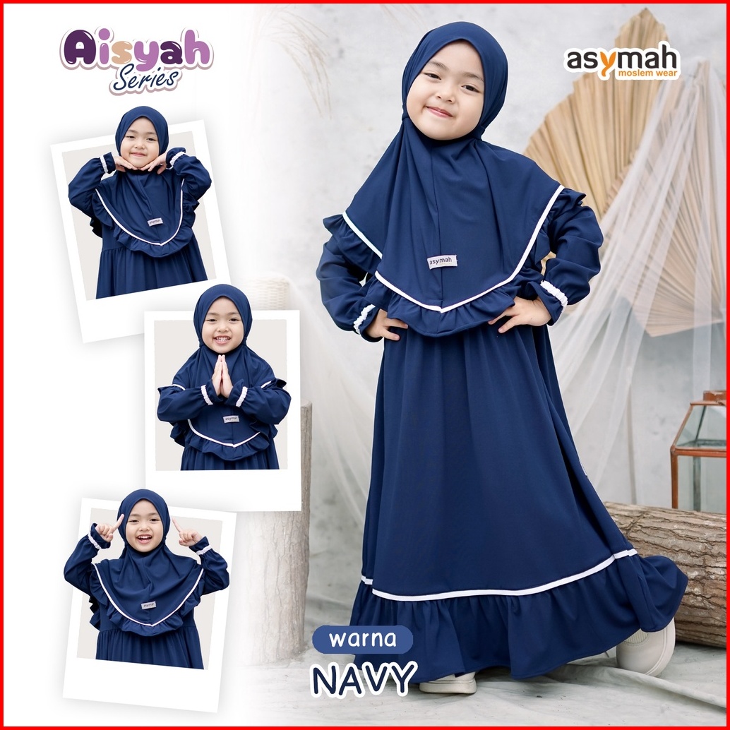 - Setelan Gamis Anak Jersey Polos Aisyah Series Warna Navy