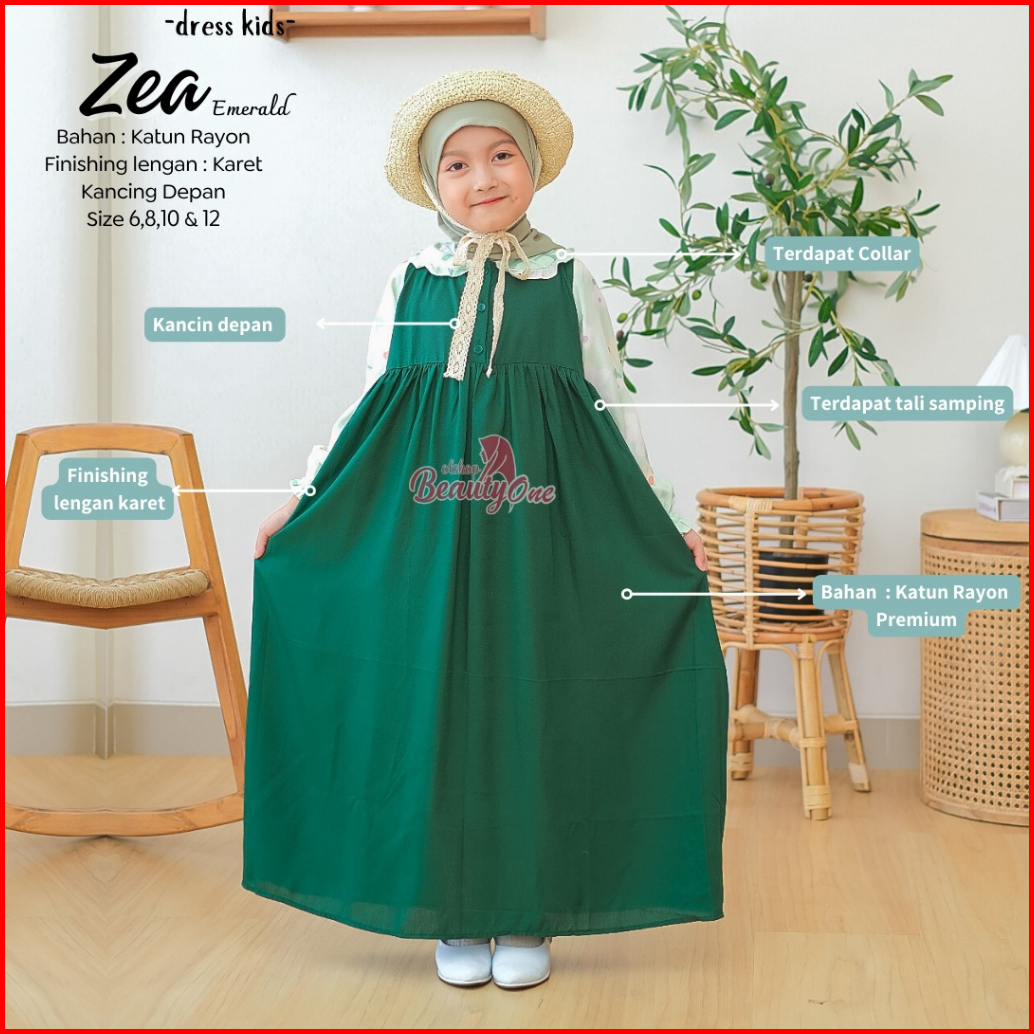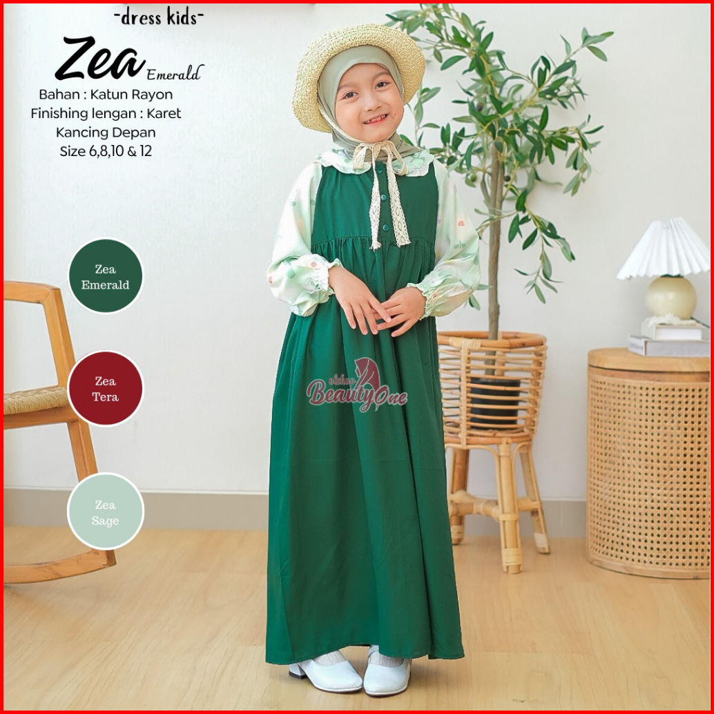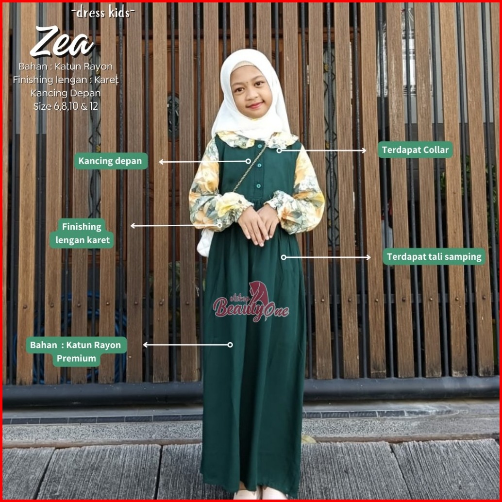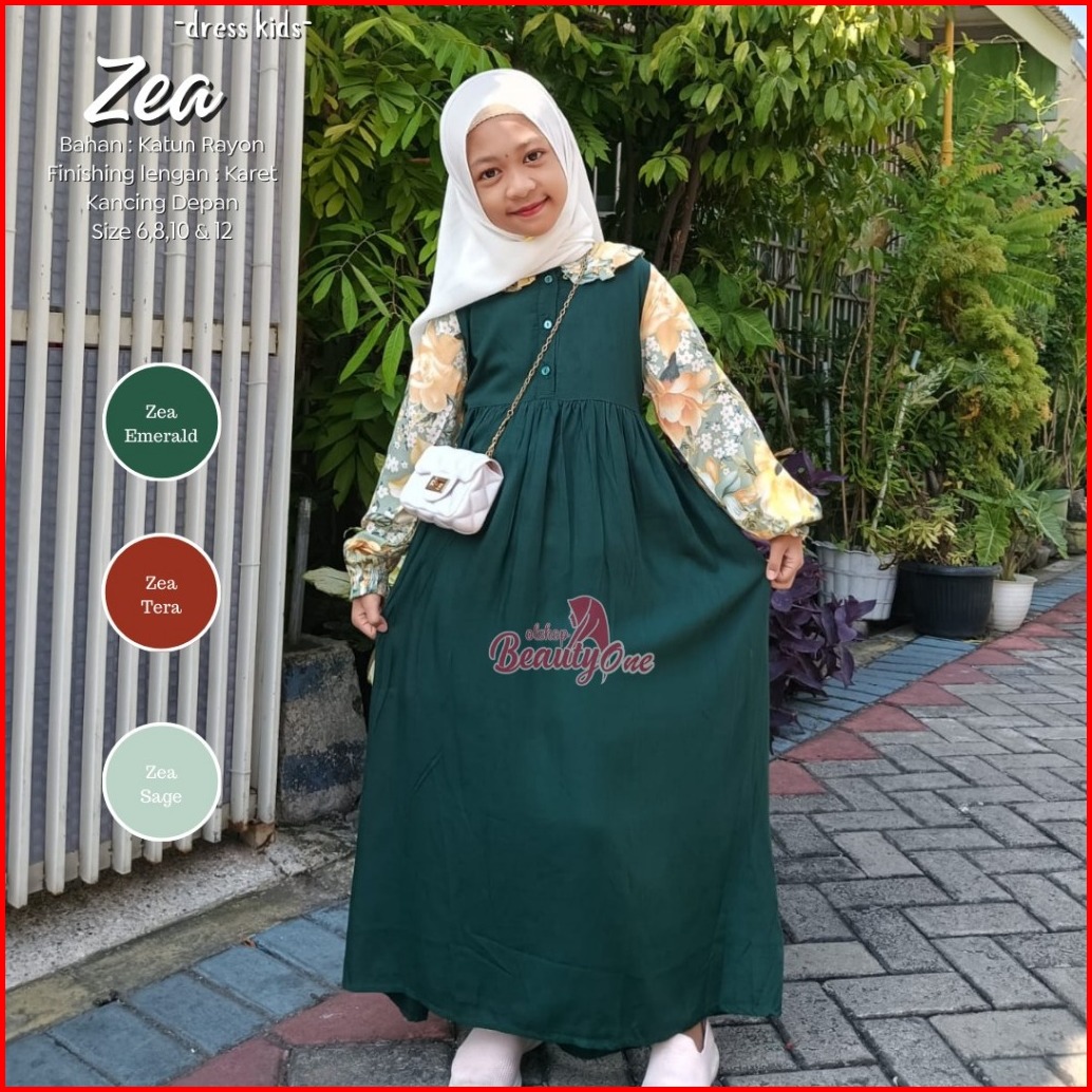 Gamis Anak Perempuan Homey Dress Anak Zea Usia 4-12tahun Dress Anak Muslimah Bahan Katun Rayon Premium