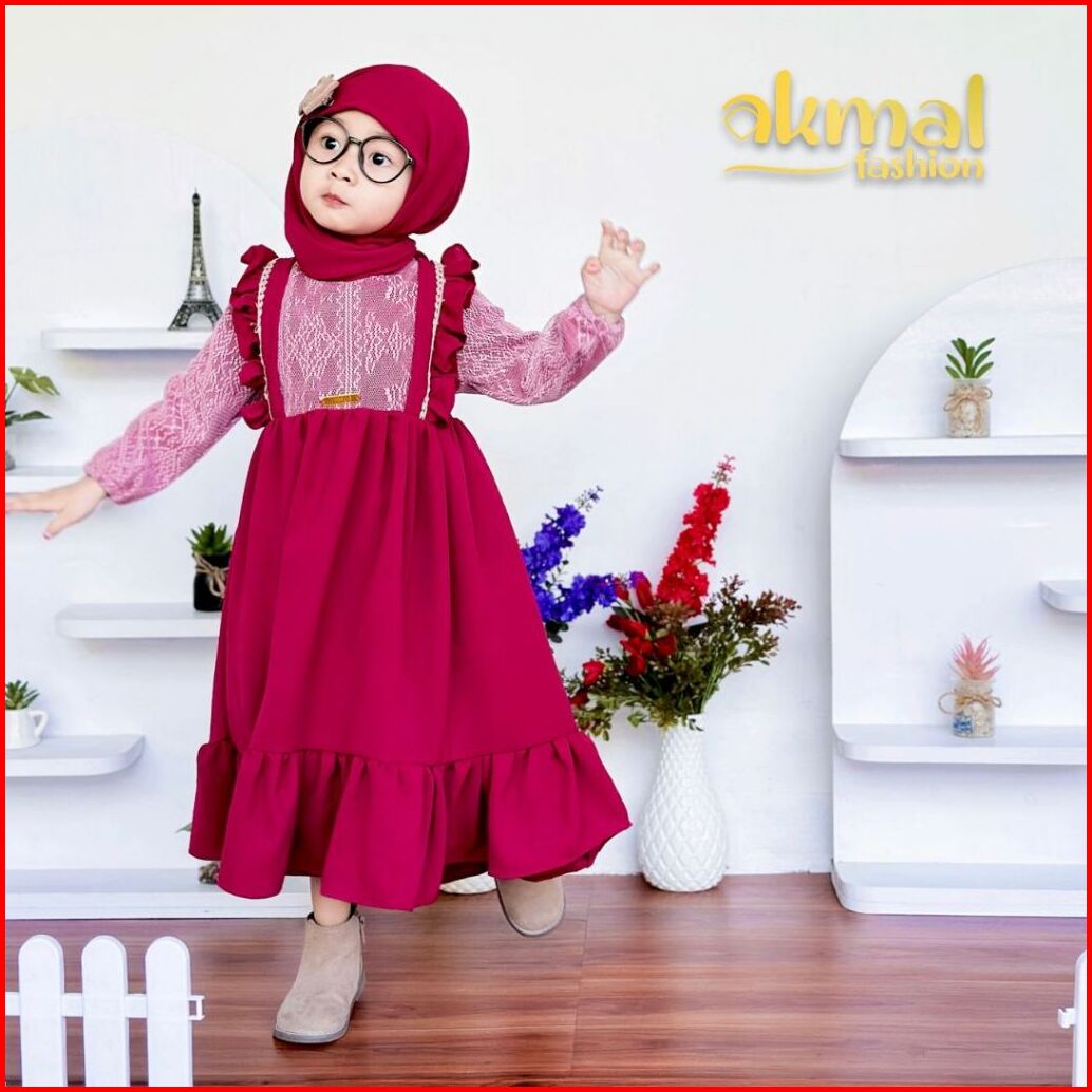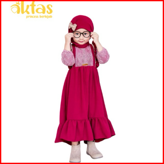 Akfas - Gamis Anak Brokat Set Hijab Baju Anak Mewah Gamis Anak Mewah Baju Lebaran Kode 32