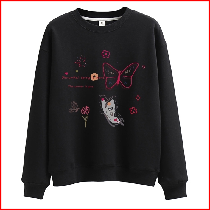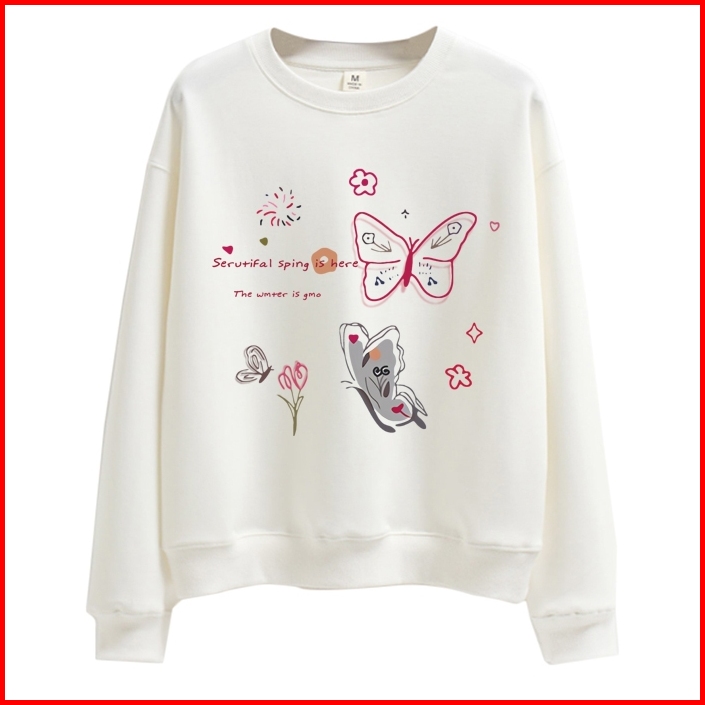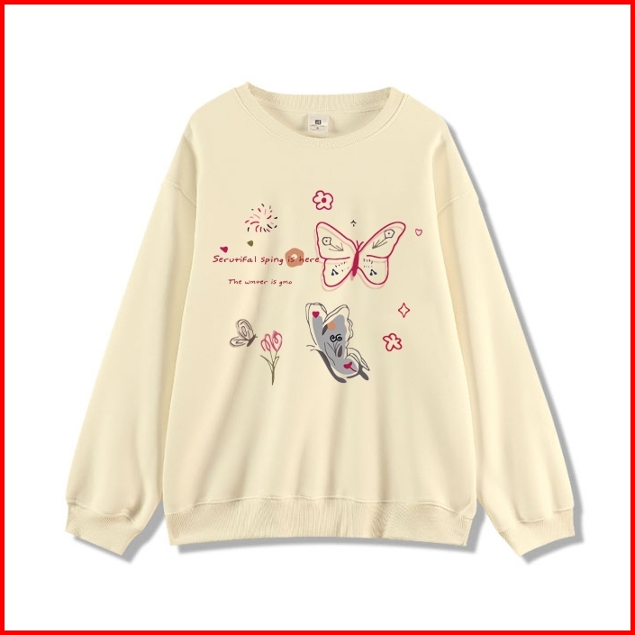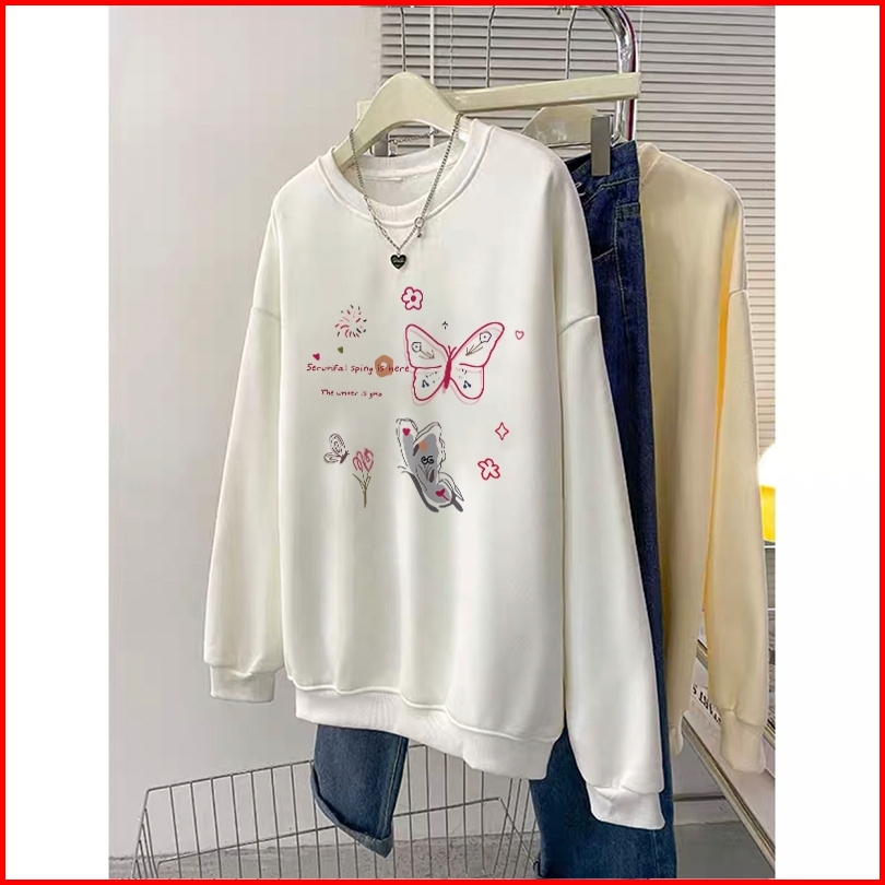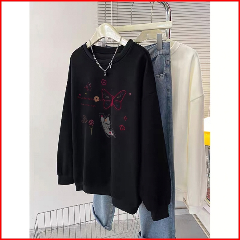 Forteid Sweater Lengan Panjang Oversized Street Style Korean Style Switer Wanita Oversize Cetakan Kupu-kupu Korean Style