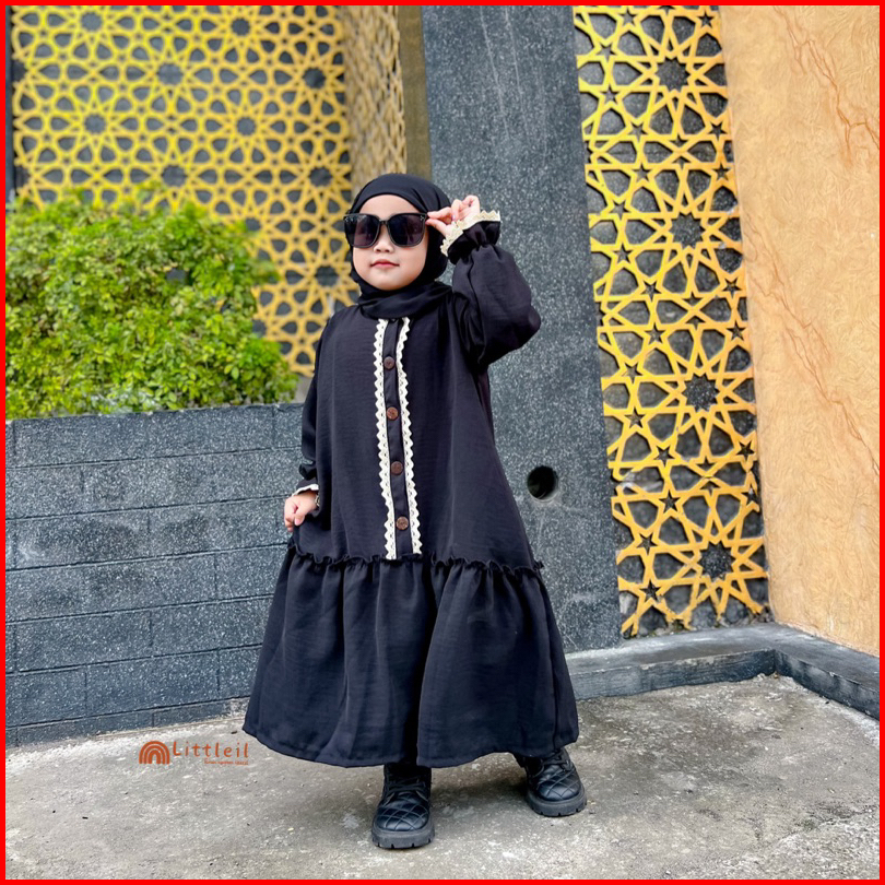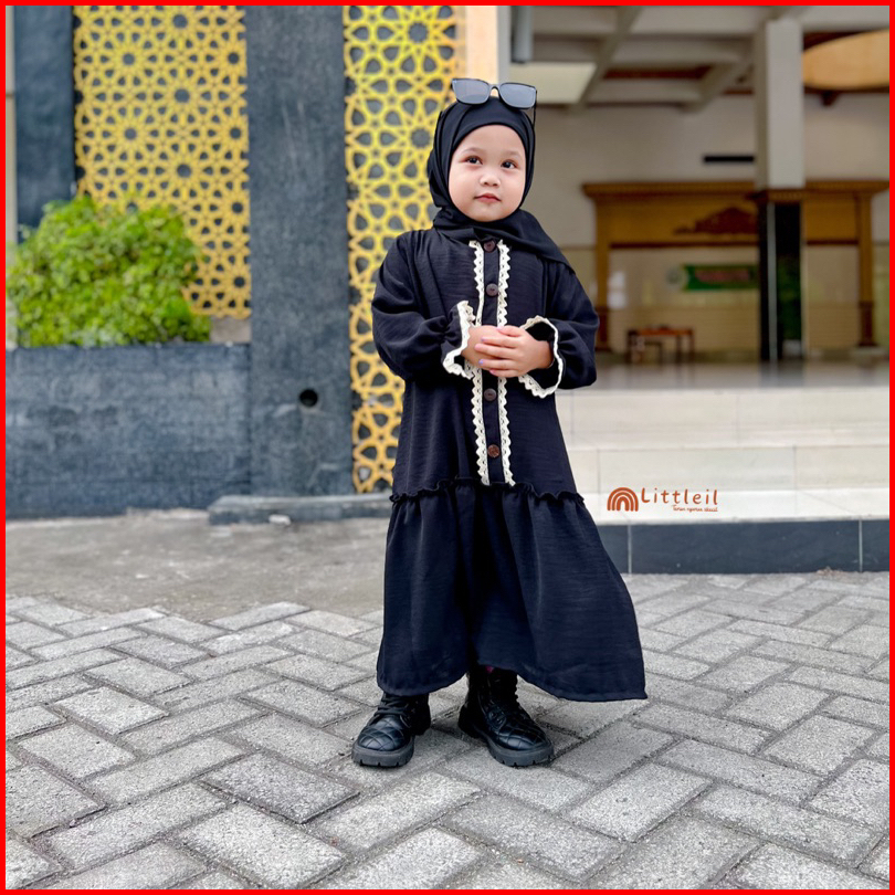 Littleil- Medina Abaya Sampai Usia 8 Tahun Abaya Dress Anak Bahan Crinkle Gamis Abaya Anak