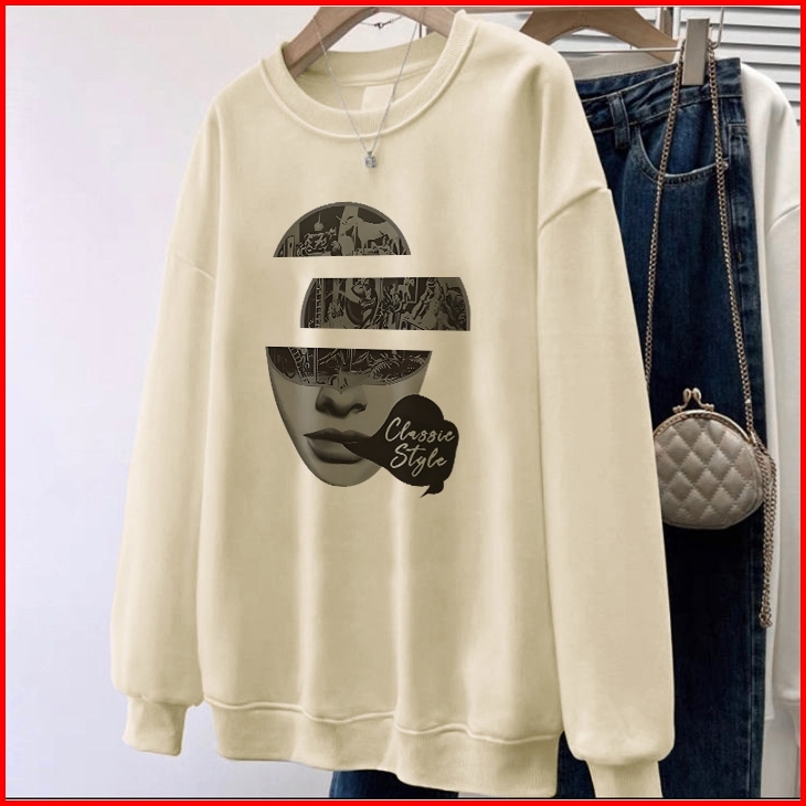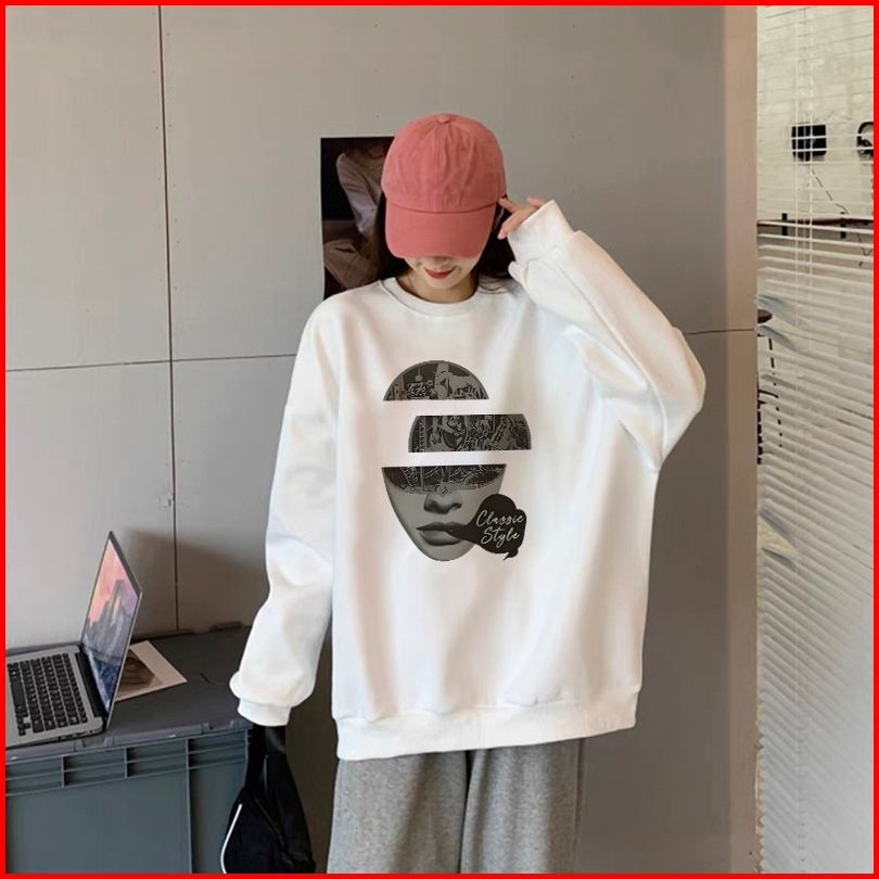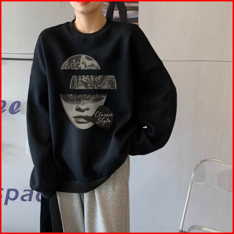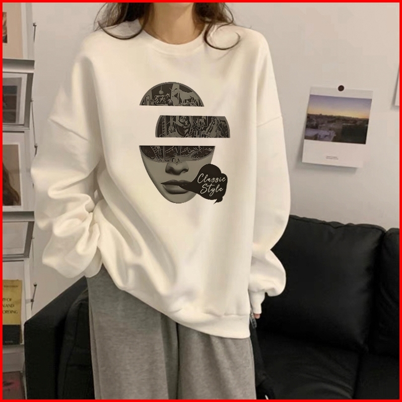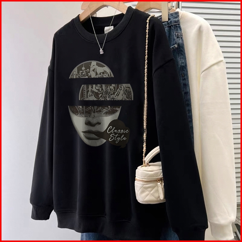 Forteid Sweater Lengan Panjang Oversized Street Style Korean Style Switer Wanita Oversize Kaos Pencetakan Wanita Kepopul