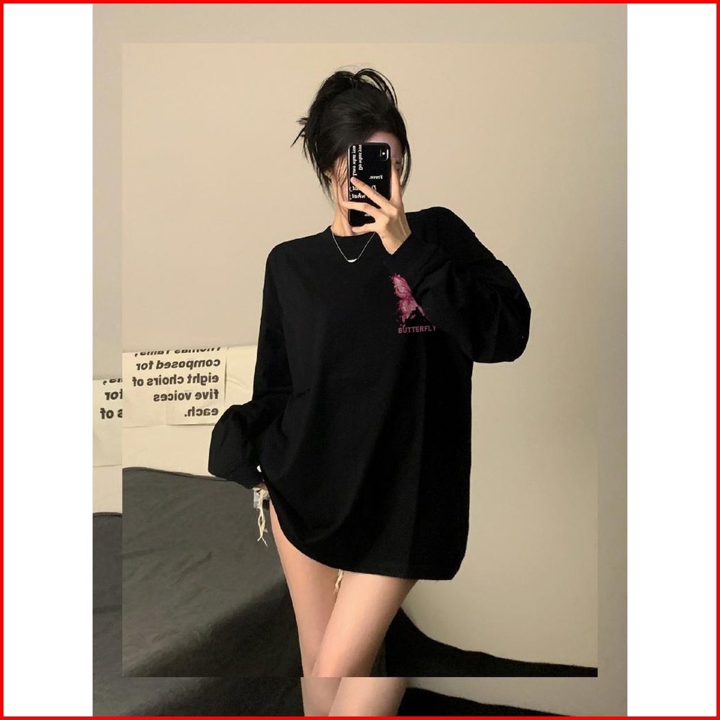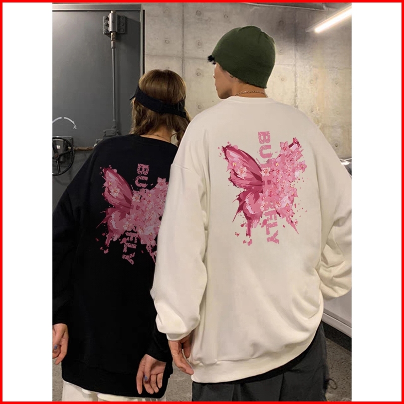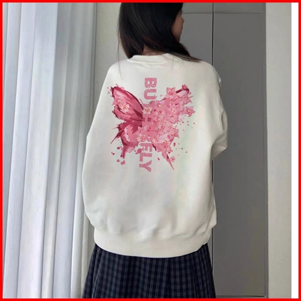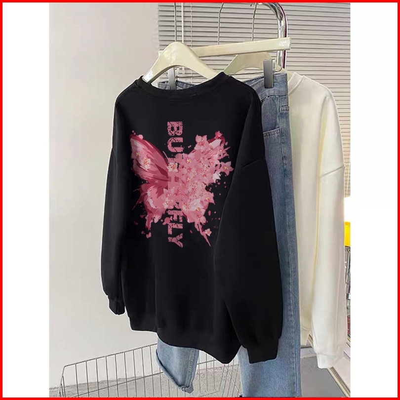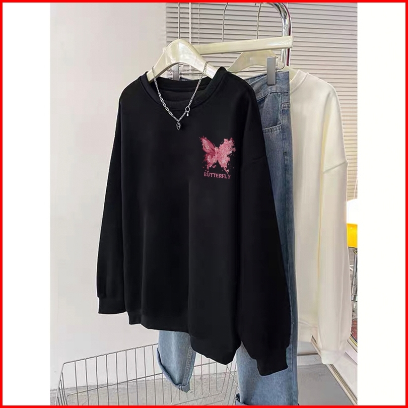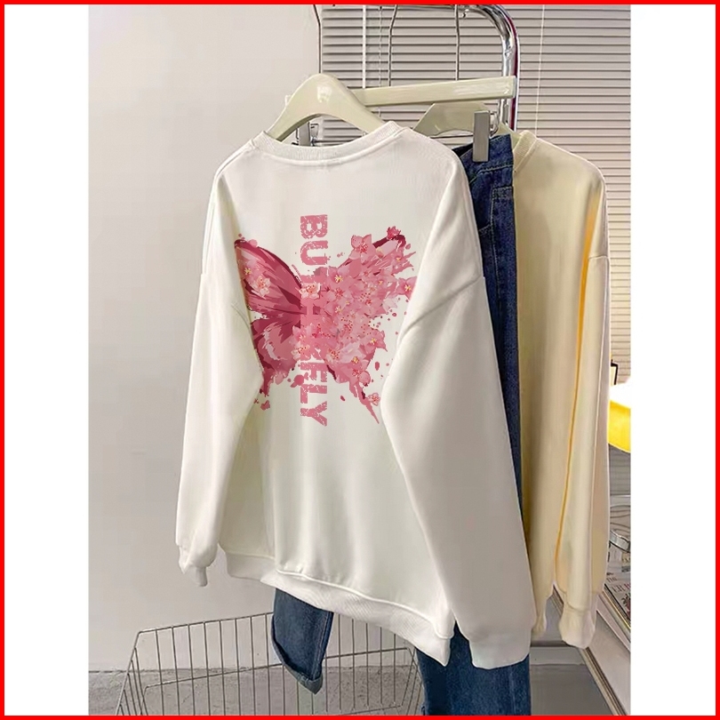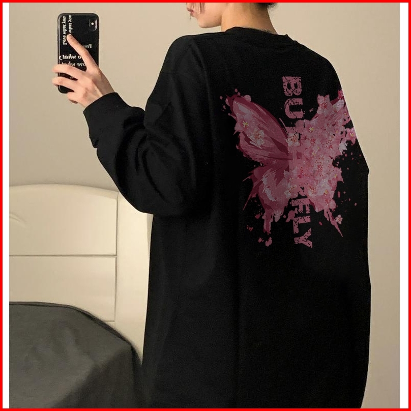 Forteid Sweater Lengan Panjang Oversized Street Style Korean Style Switer Wanita Oversize Cetakan Kupu-kupu Korean Style