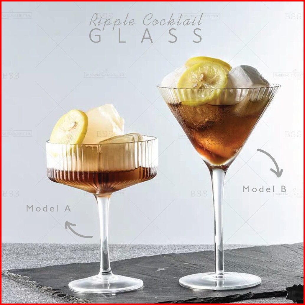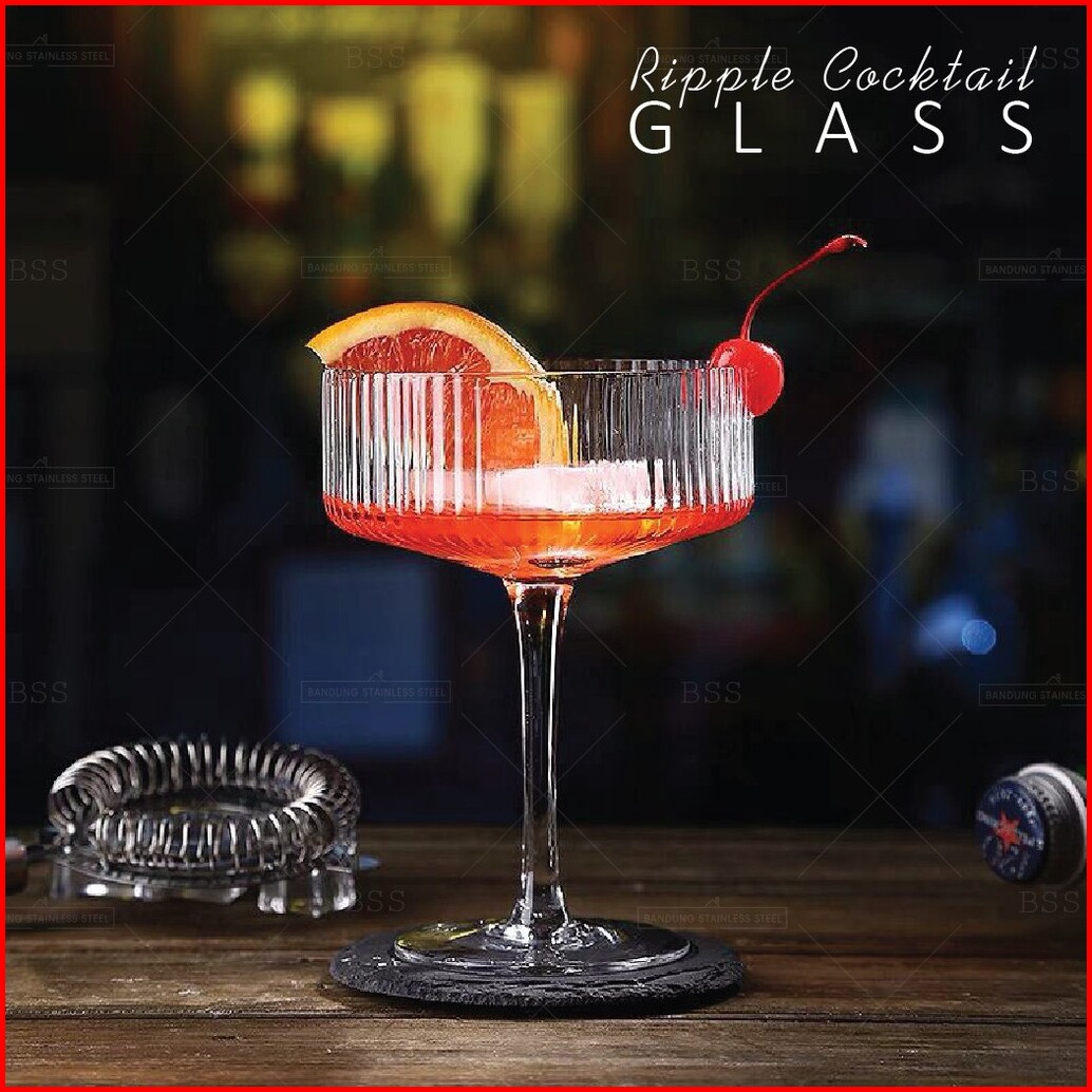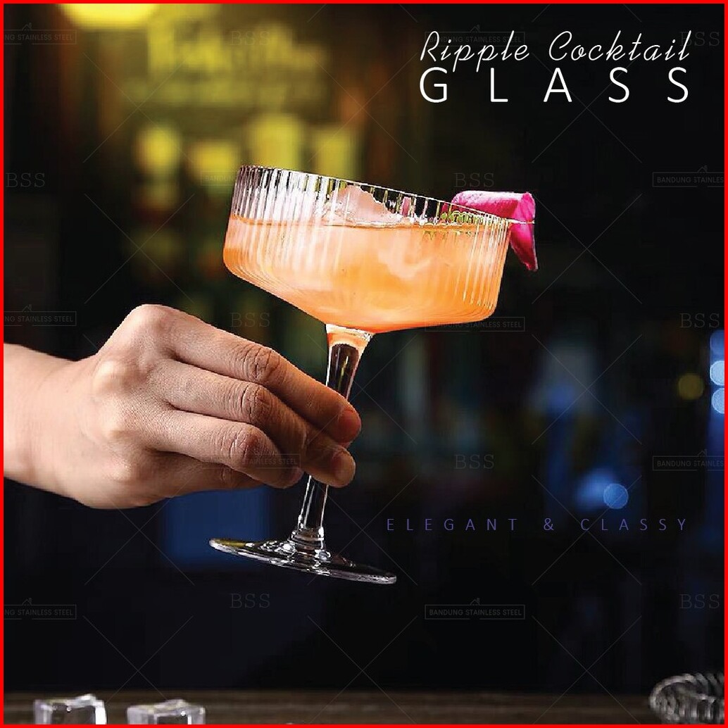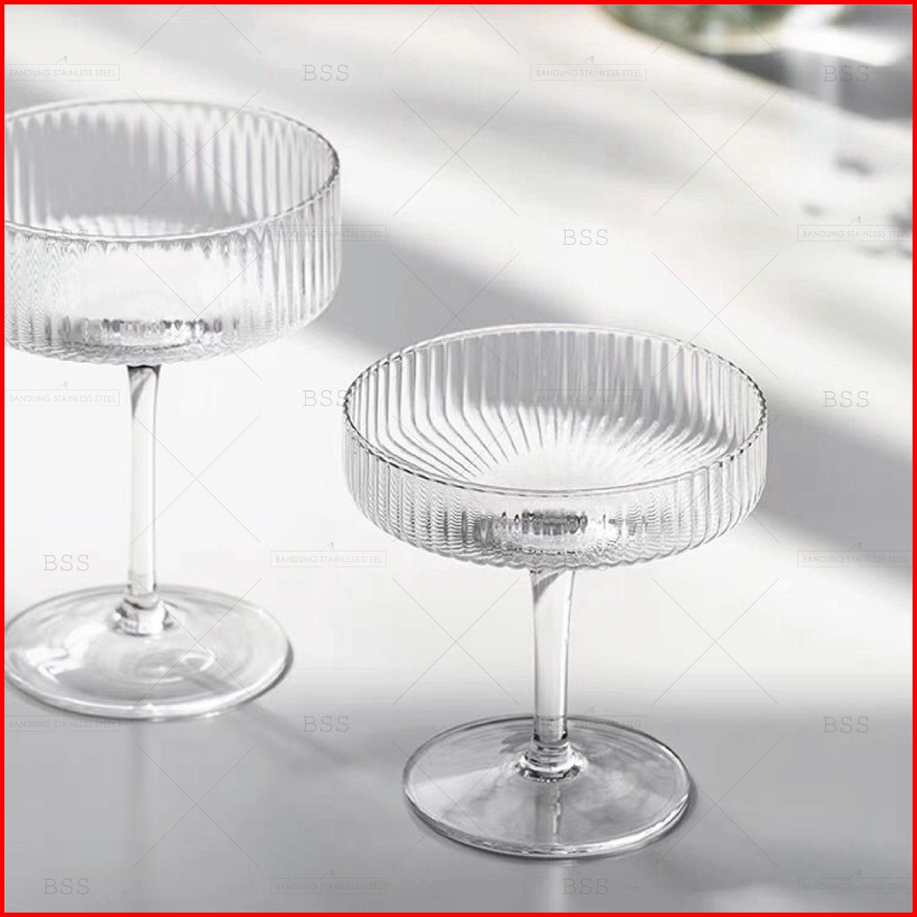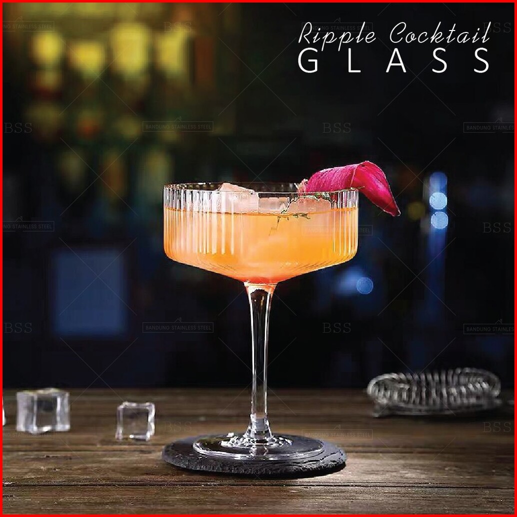 Gelas Kaca Ripple Cocktail Minuman Tinggi Mewah Motif Garis Timbul
