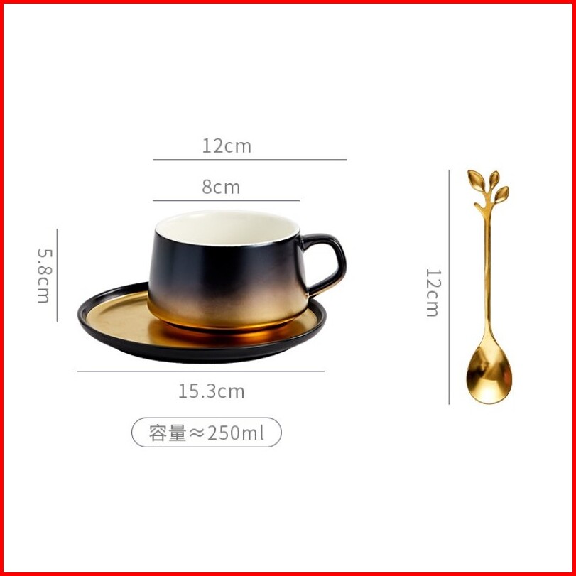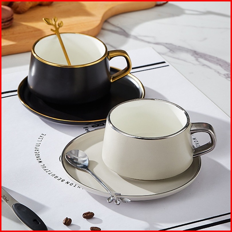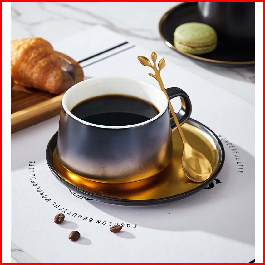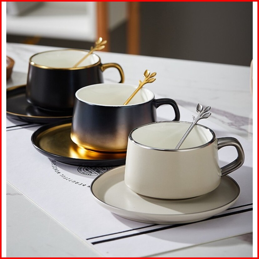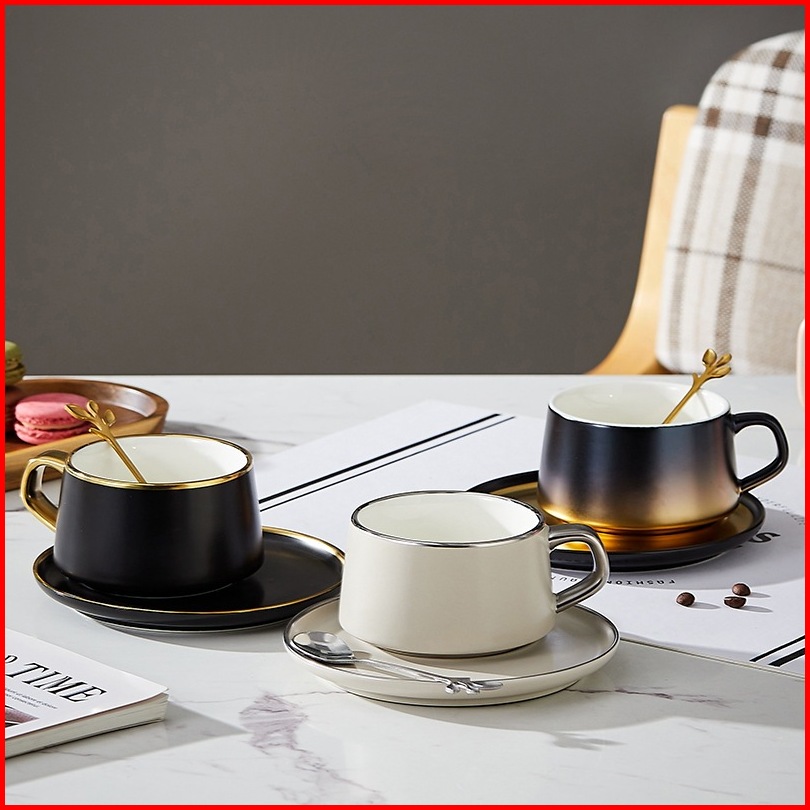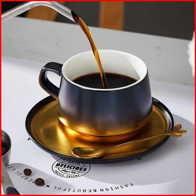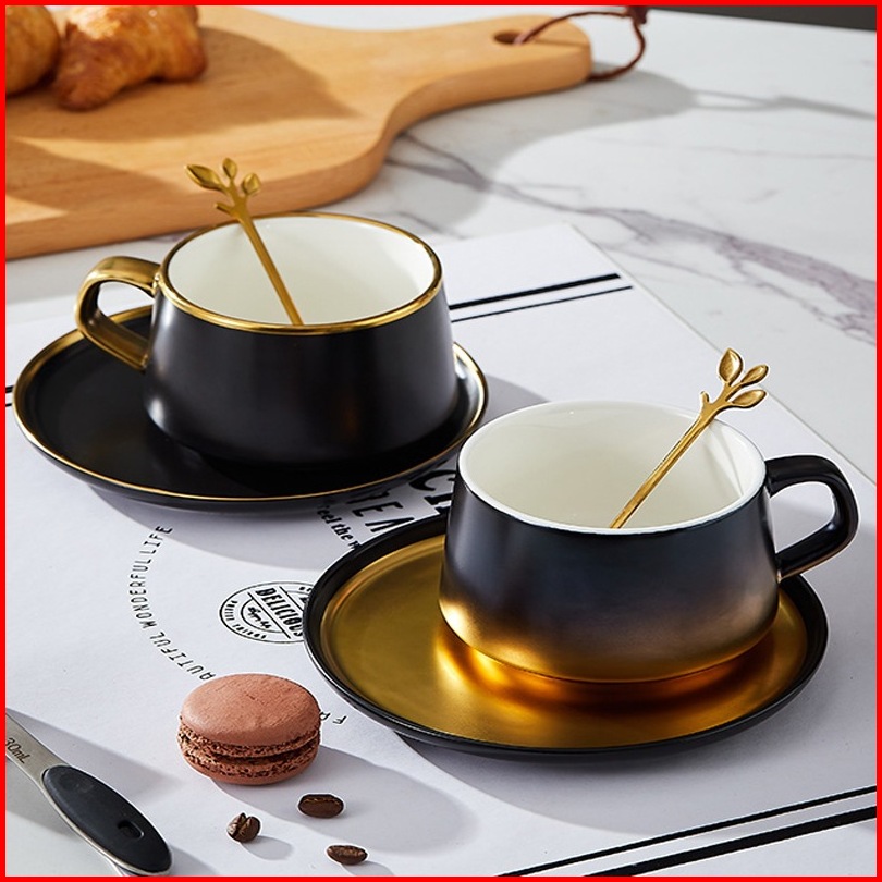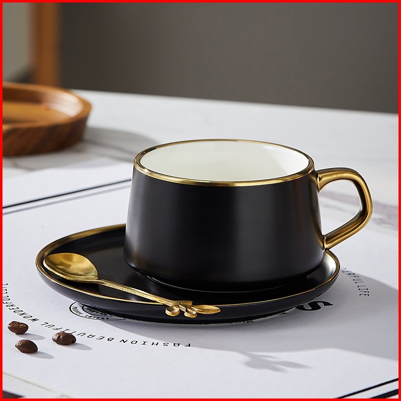 Ashome Cangkir Keramik Hitam Lengkap Dengan Piring Elegant Mewah Cangkir Kopi Atau Teh Doff Elegant Mewah Anti Panas Dan