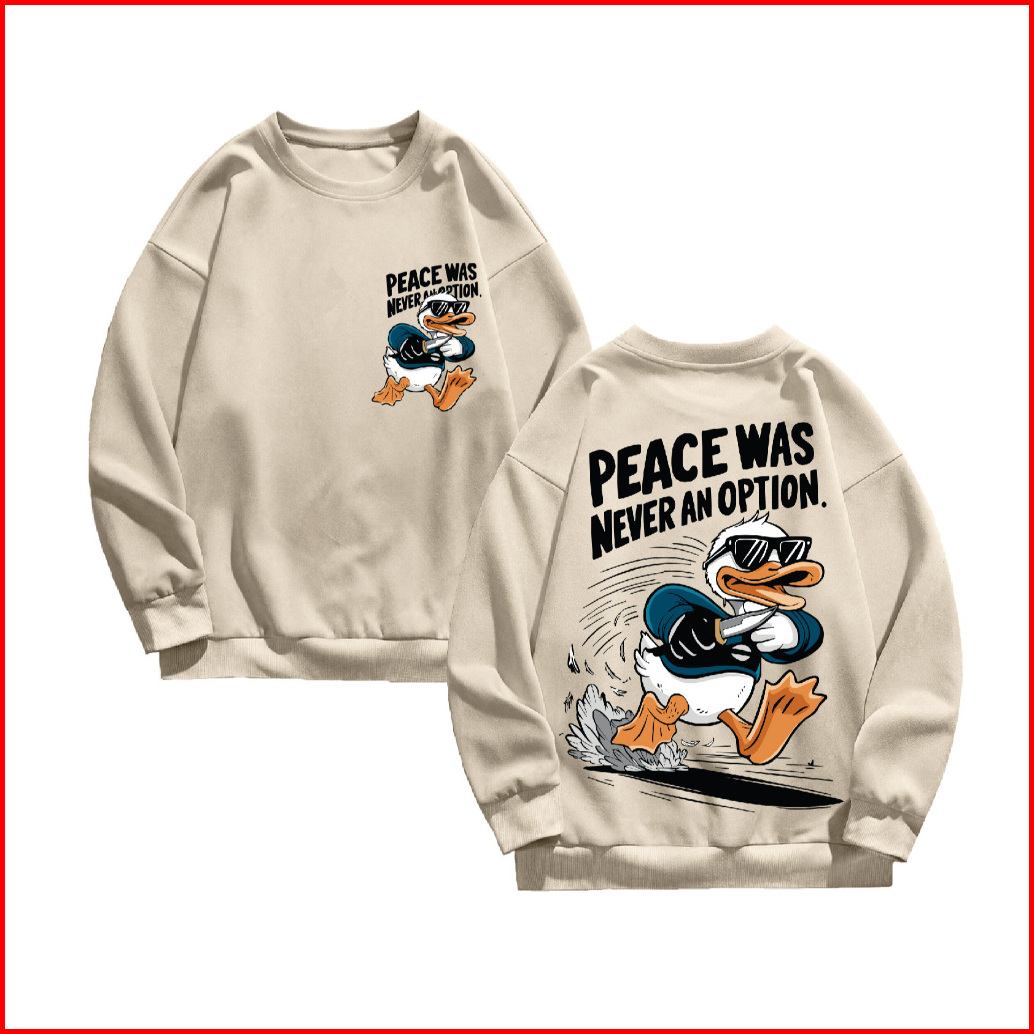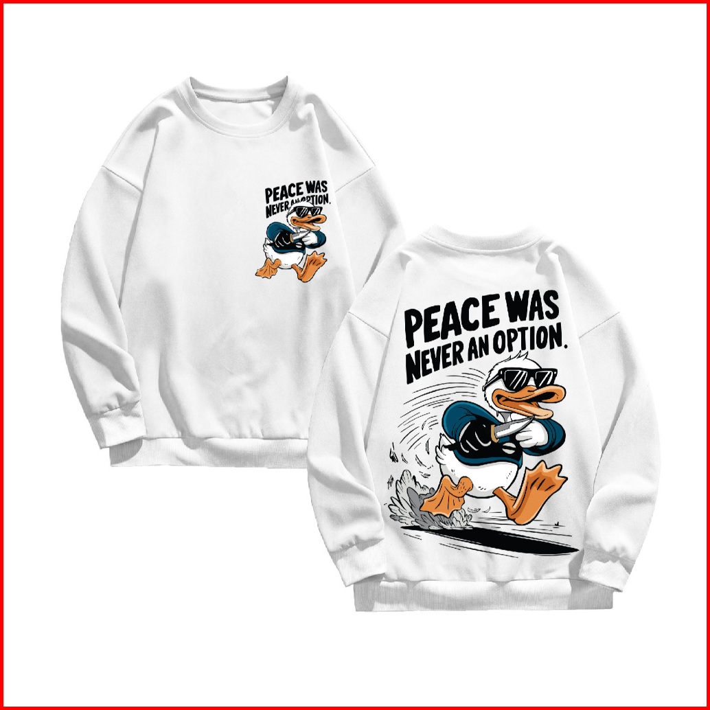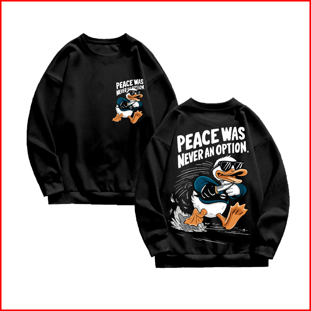 Fenjack Sweater Basic Peace Was Never Sablon Depan Belakang Size M-xxl - Pria Wanita