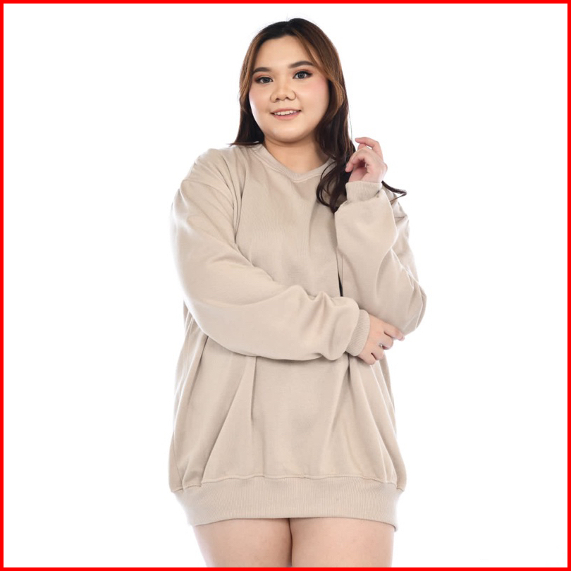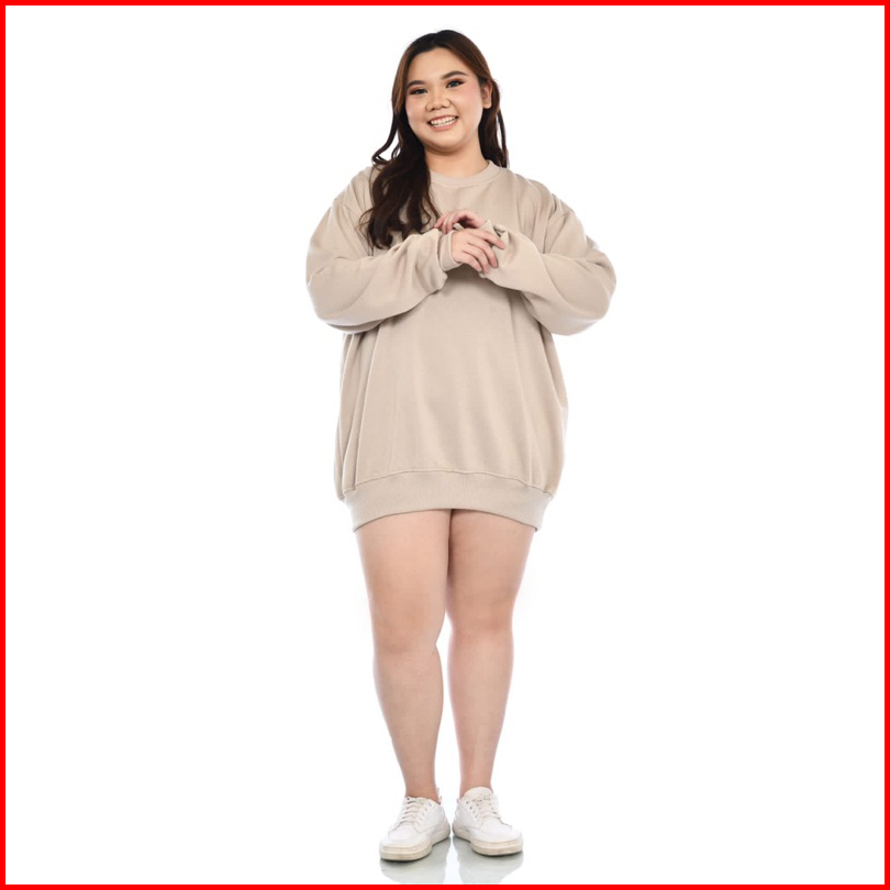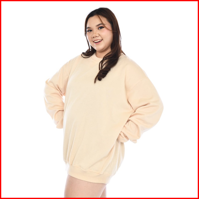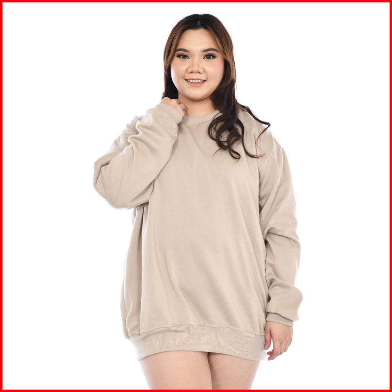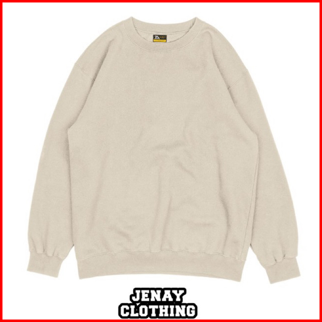 Jenay - Sweater Crewneck Basic Polos Unisex L Xl Xxl Pria Wanita Beige