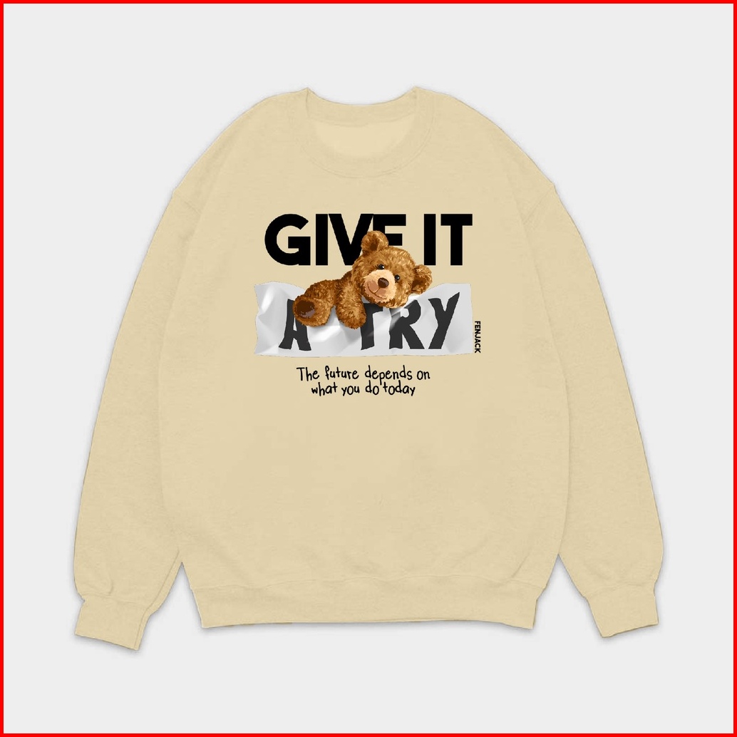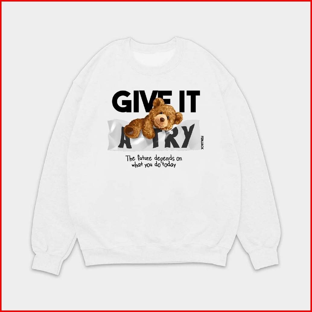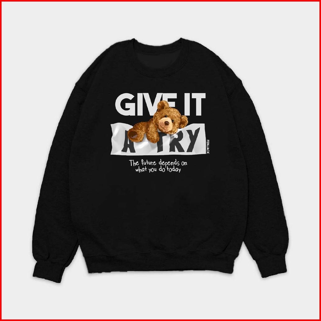 Fenjack Sweater Basic Give Bear Sablon Size M-xxl - Pria Wanita