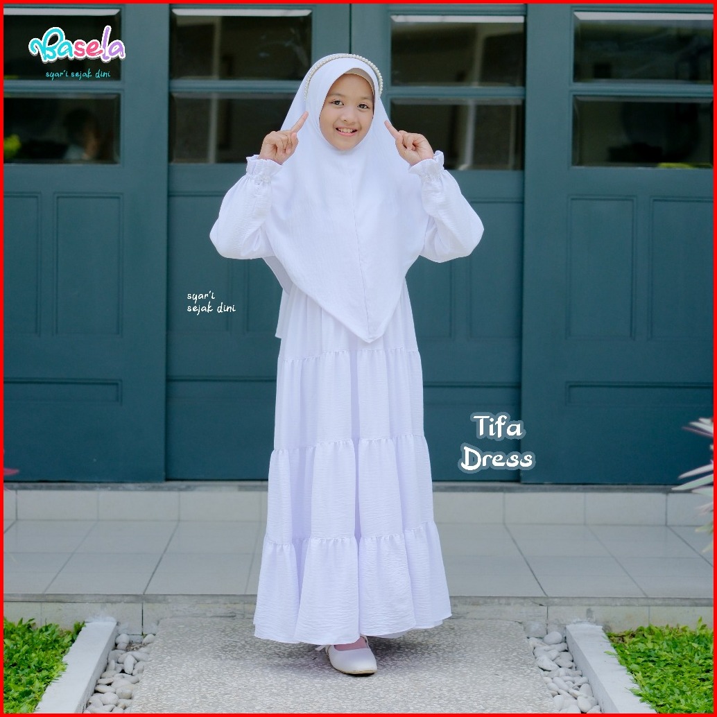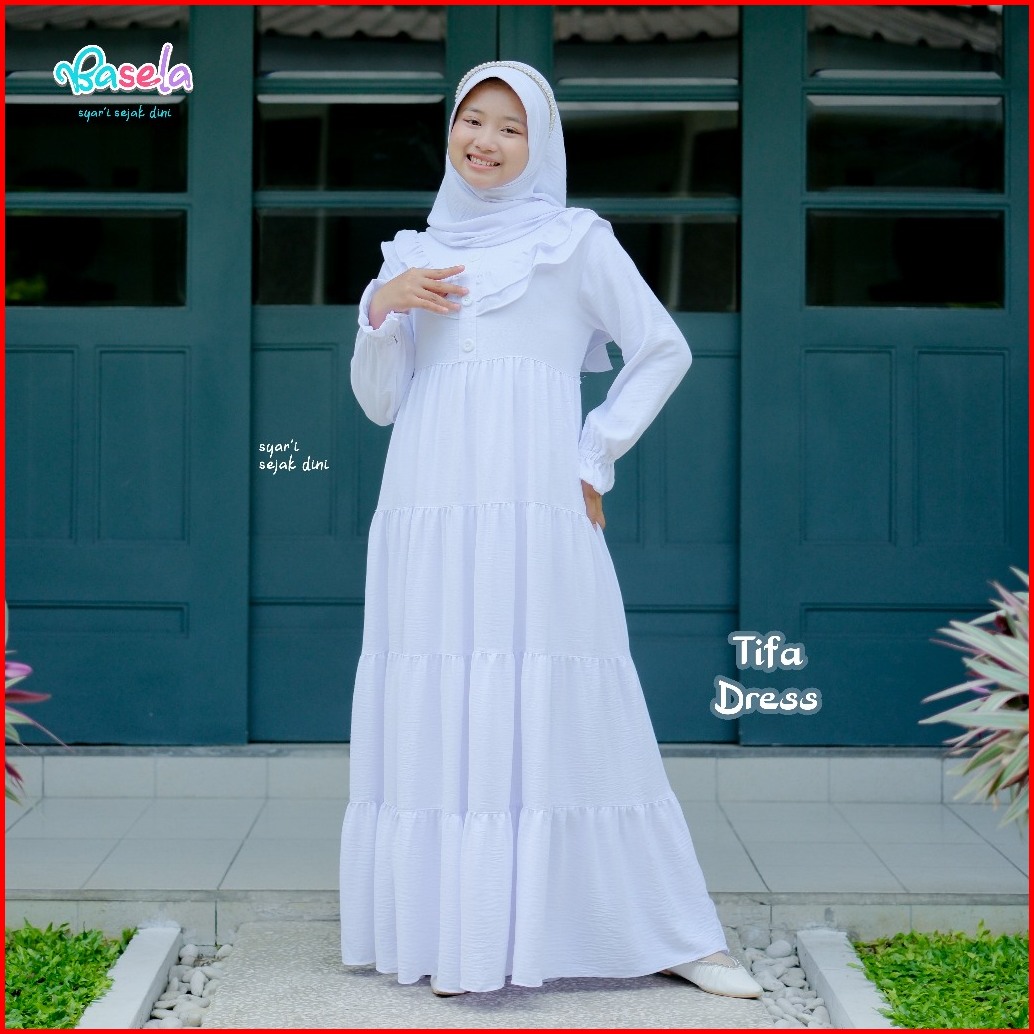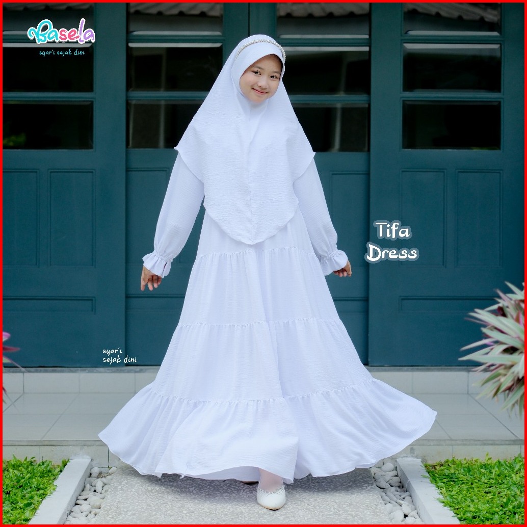 Tifa Dress By Basela Gamis Anak Perempuan Putih Polos Set Hijab