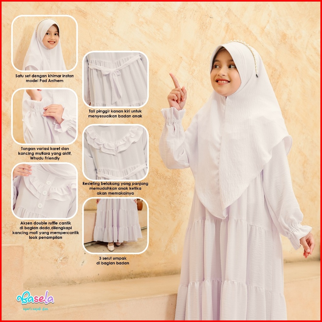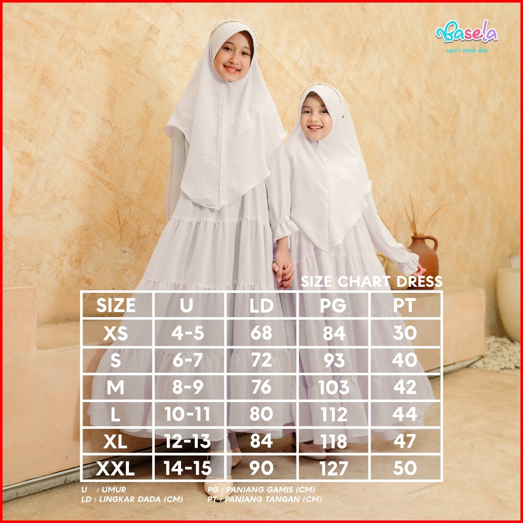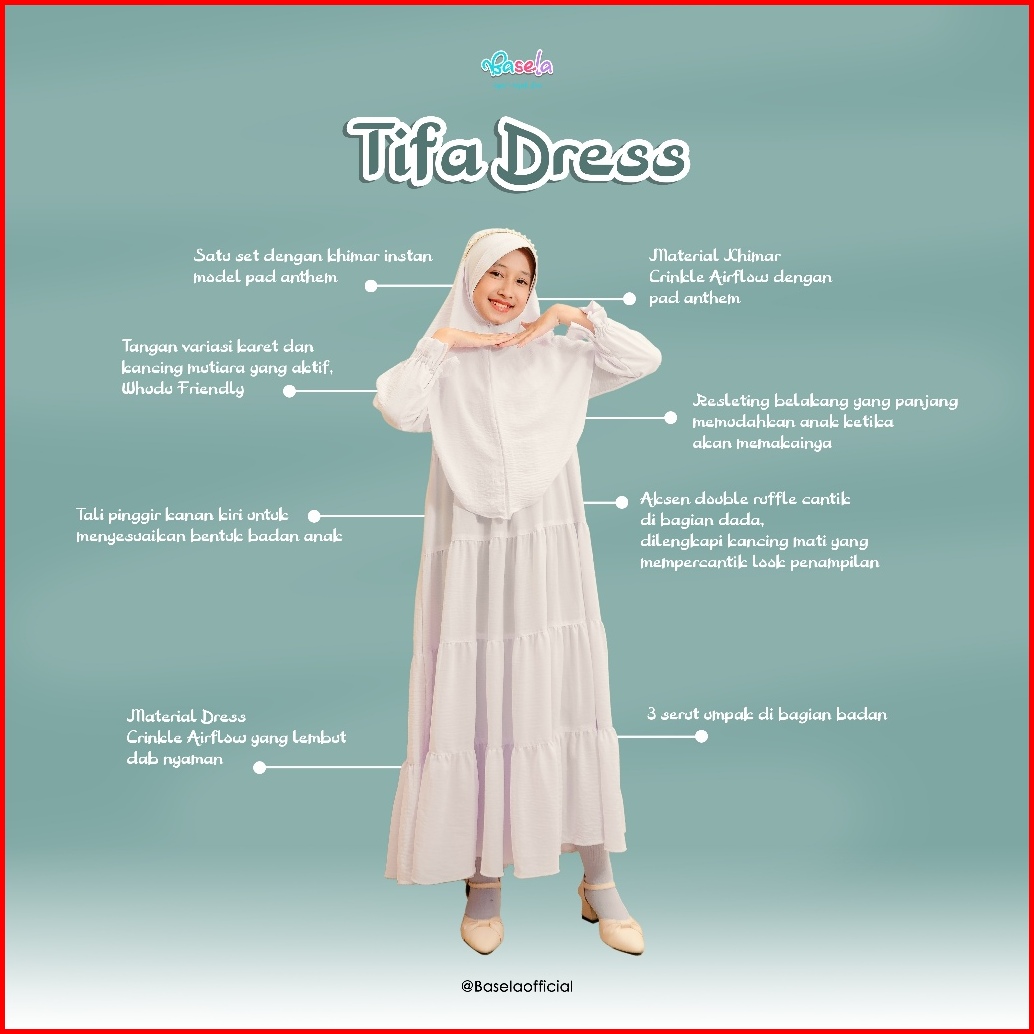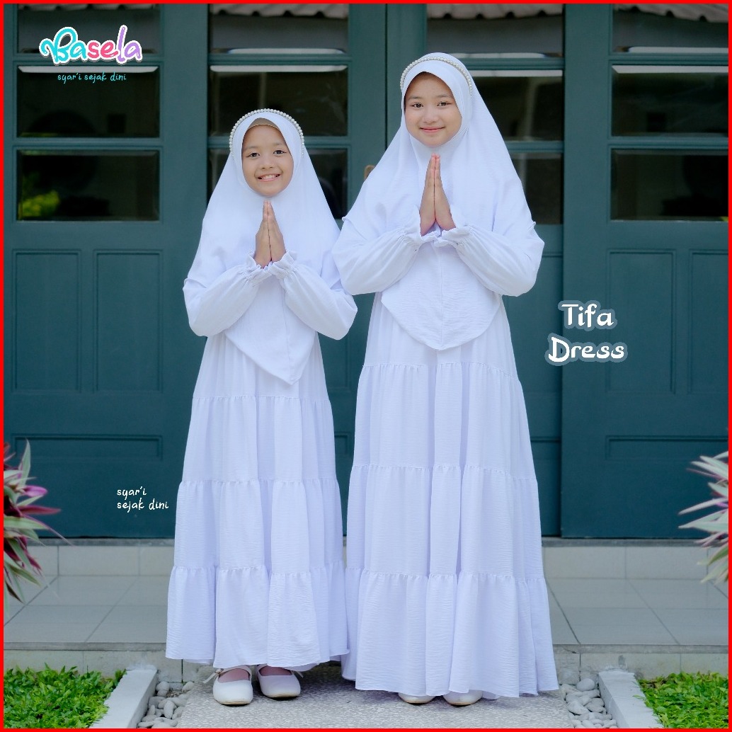 Tifa Dress By Basela Gamis Anak Perempuan Putih Polos Set Hijab