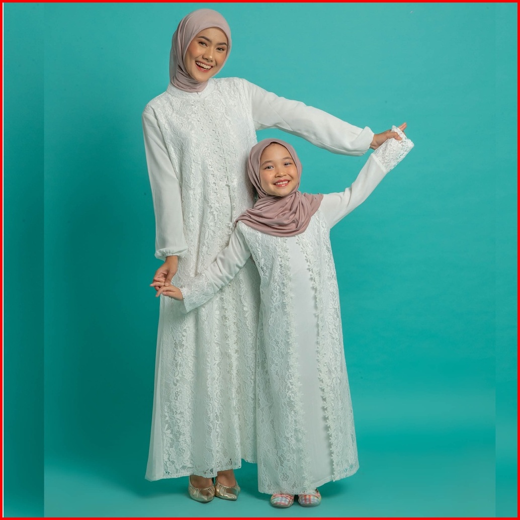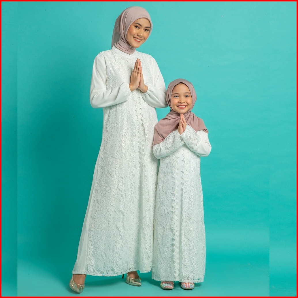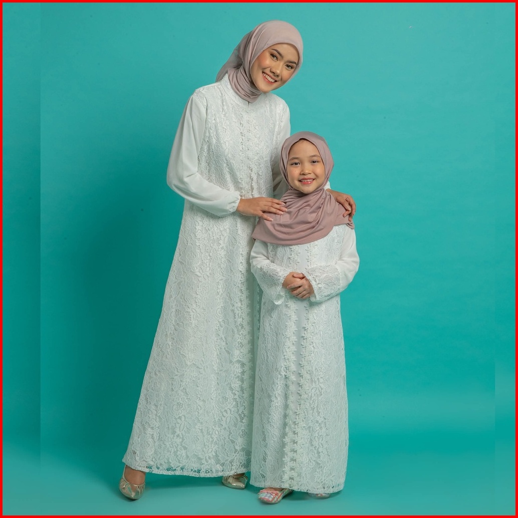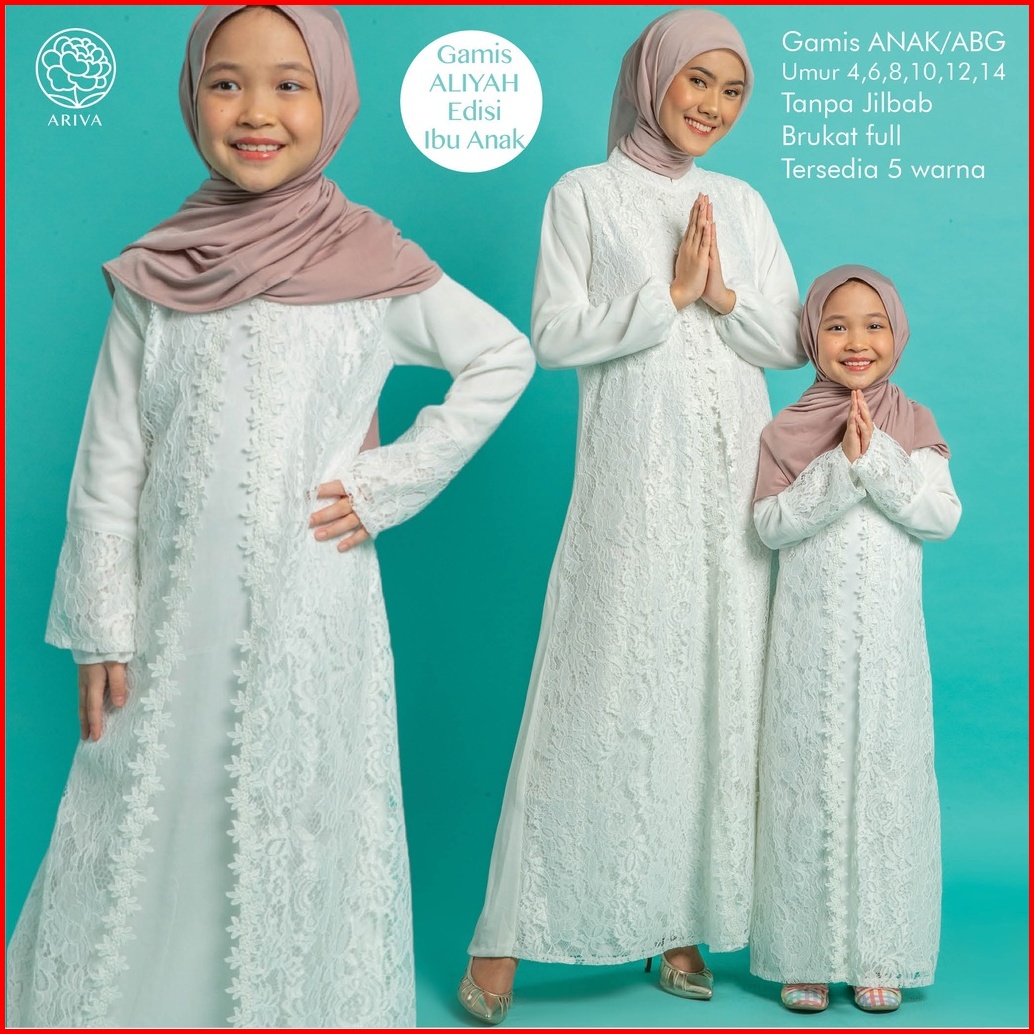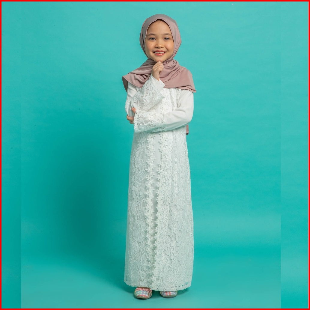 Gamis Anak Aliyah Full Brukat Putih - Gamis Lebaran Umur 4-14 Umroh Anak Manasik Haji Anak By Ariva