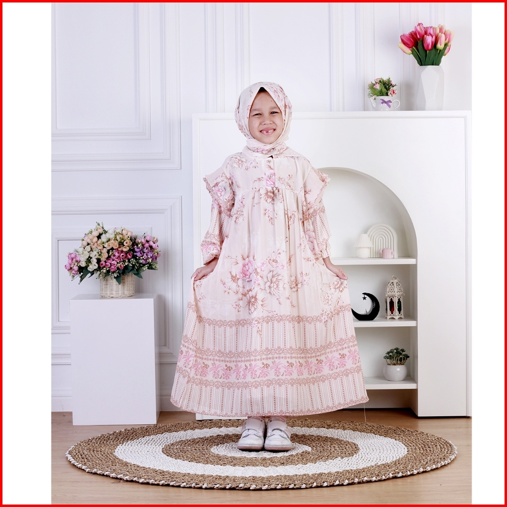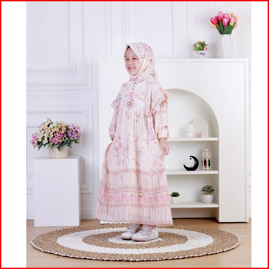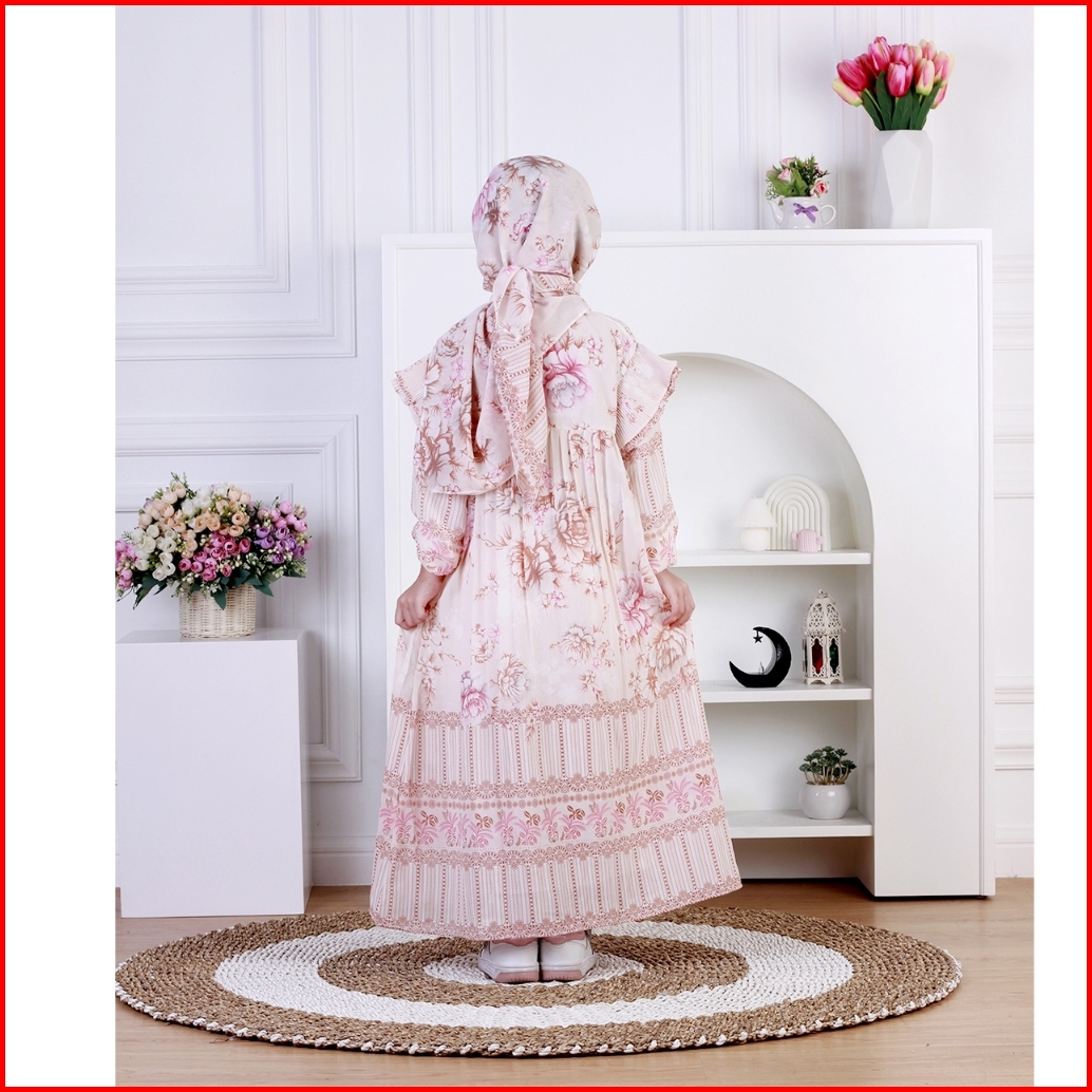 Dungdungkids Gamis Anak Vanesha Ceruty Motif Bunga Plisket Free Jilbab Segi Empat 5 - 11 Tahun