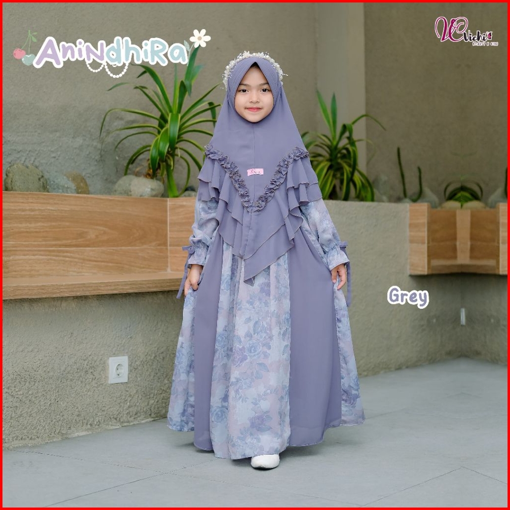 Gamis Anak Set Hijab Syari Arrifa Dan Anindhira By Vichi Muslimah Motif Bunga
