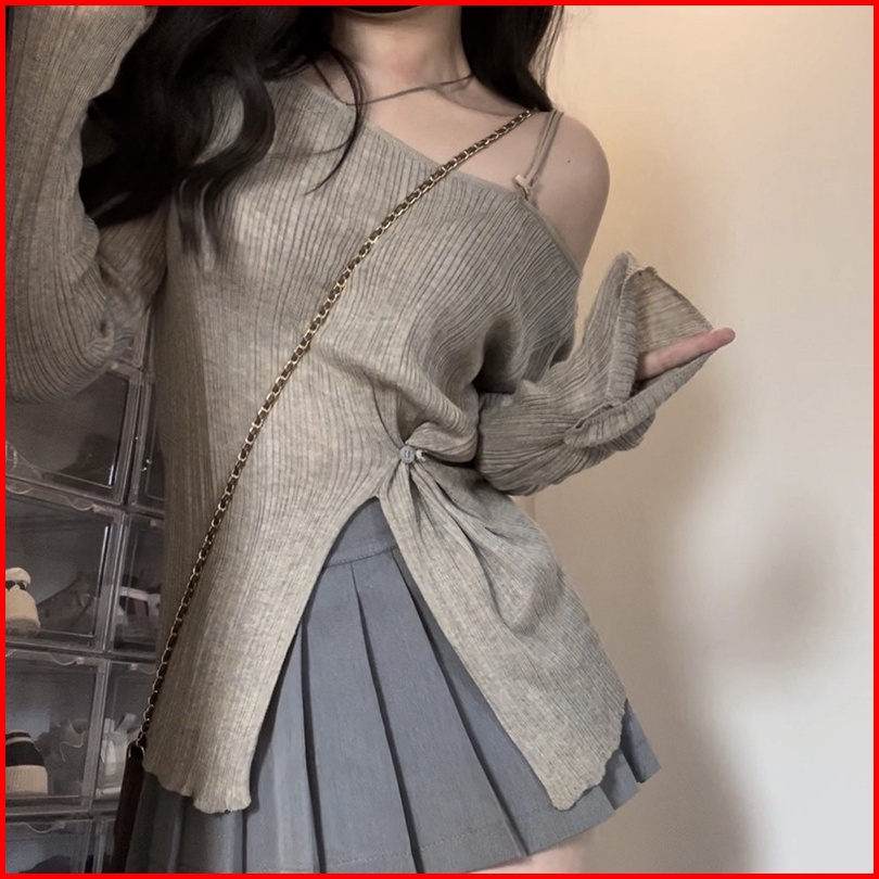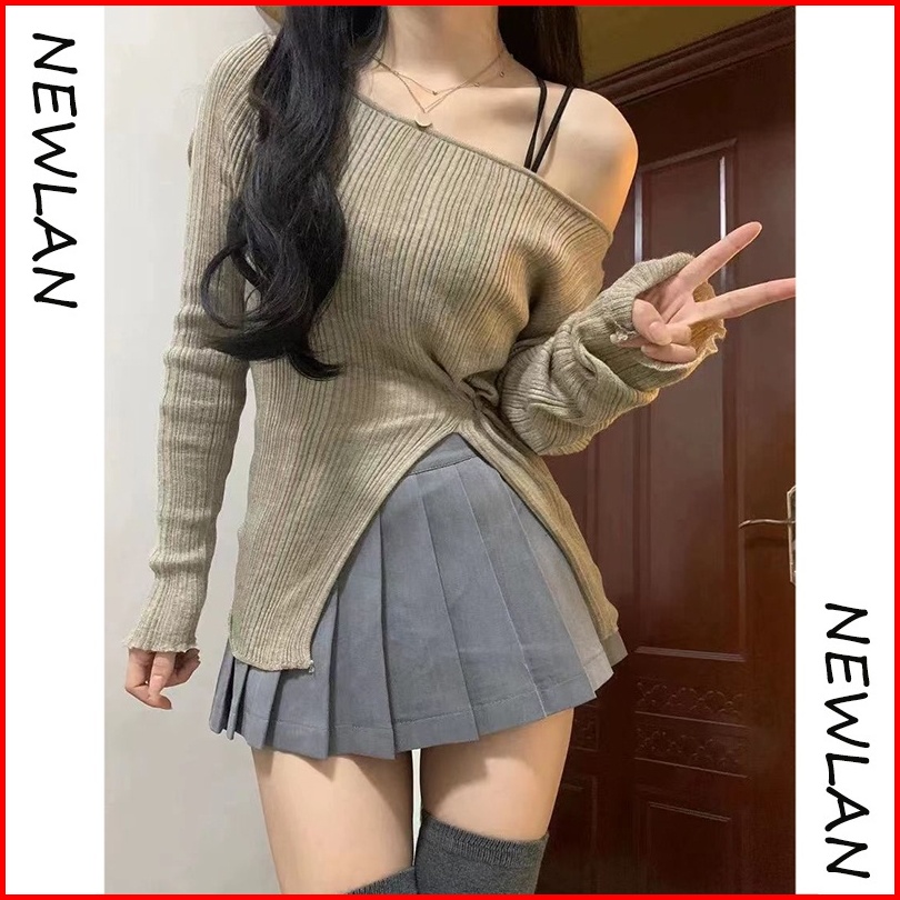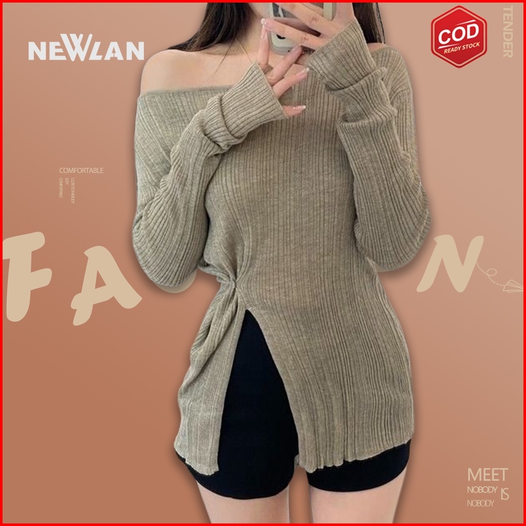 Newlan Zz056 Knitwear Wrap Kaos Rajut Wanita Lengan Panjang Atasan Rajut Crop Knit Polos V Neck Lengan Panjang Wanita Sw