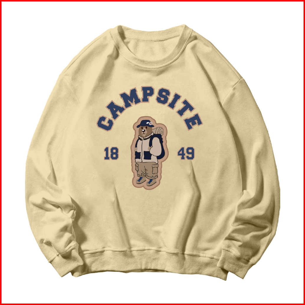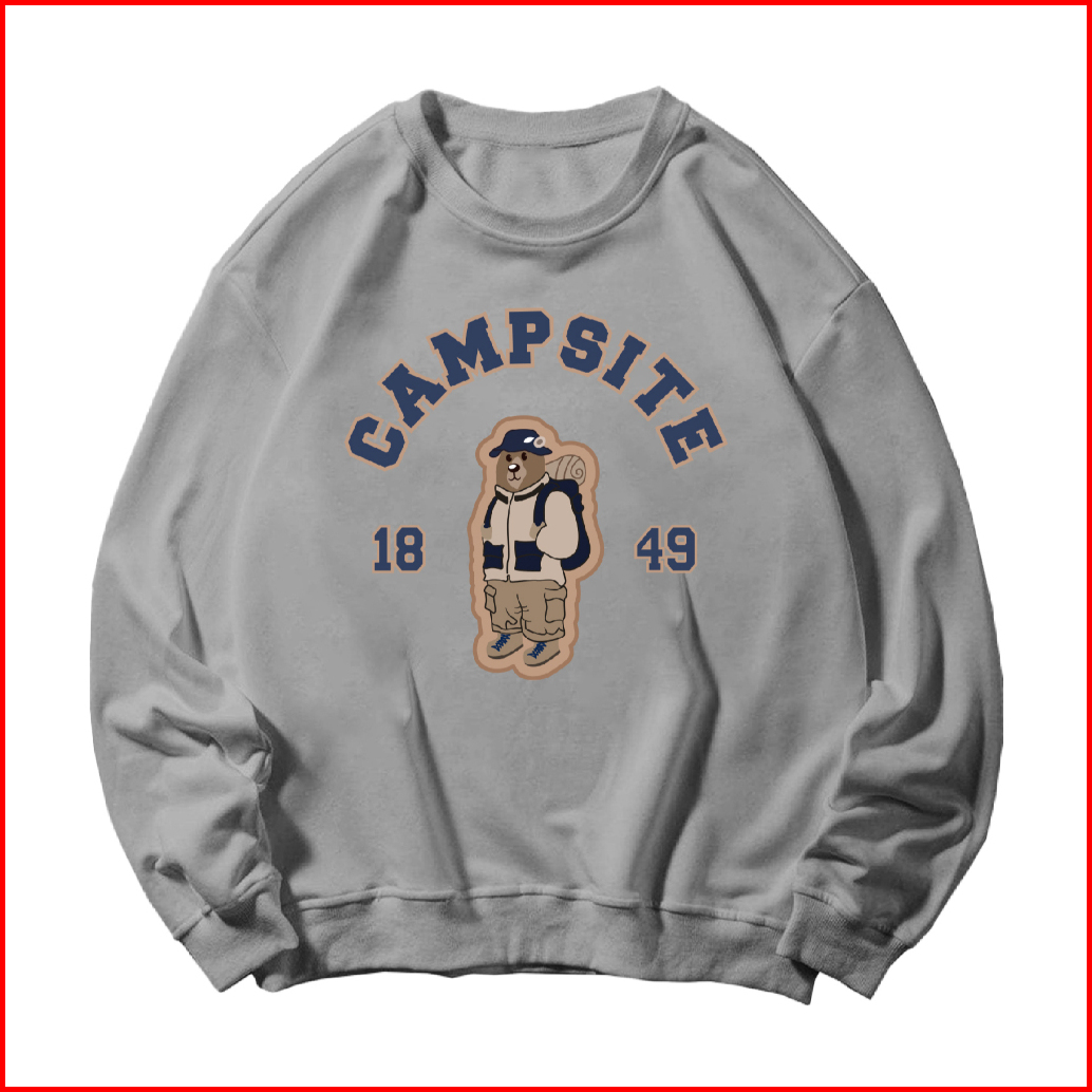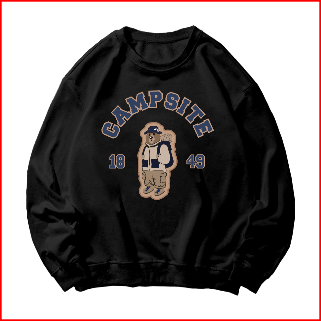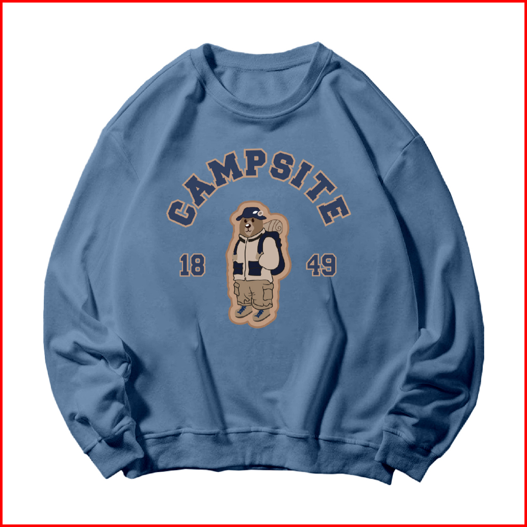 Bunz Basic Sweater Crewneck Long Sleeve Campsite Bear Size M-xxl Unisex Pria Wanita