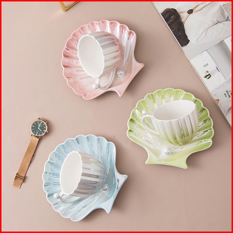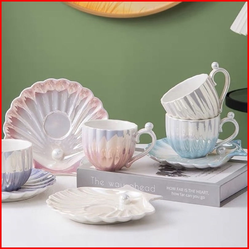 Pearl Shell Ceramic Cup Cangkir Mutiara Keramik Cantik