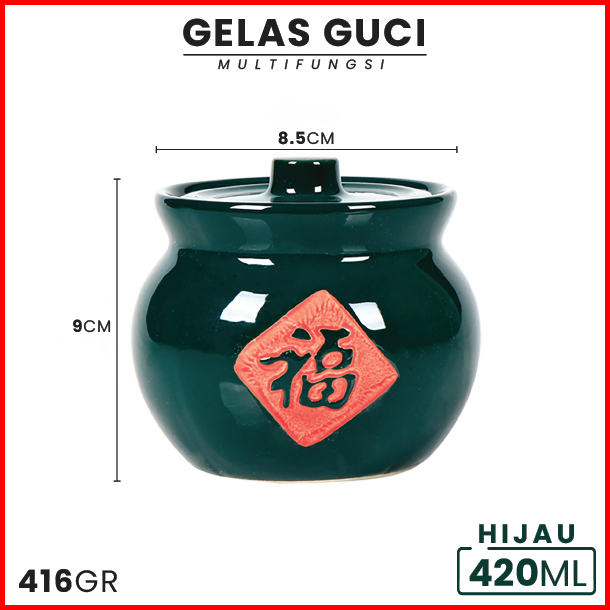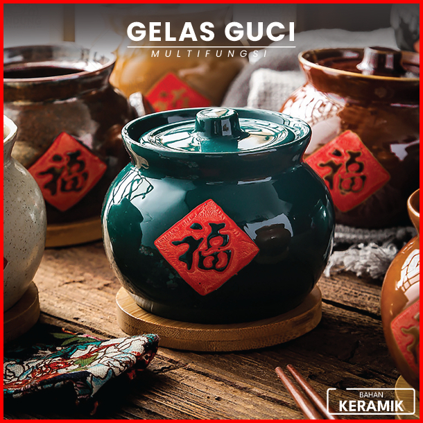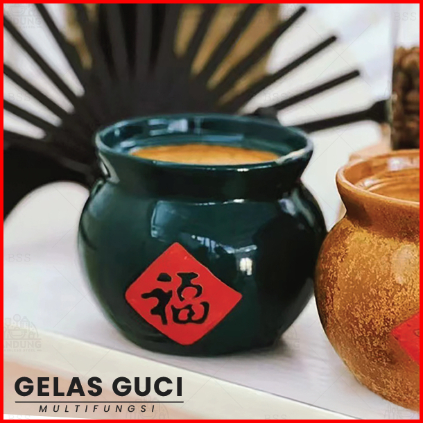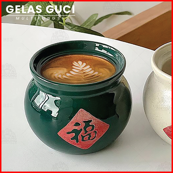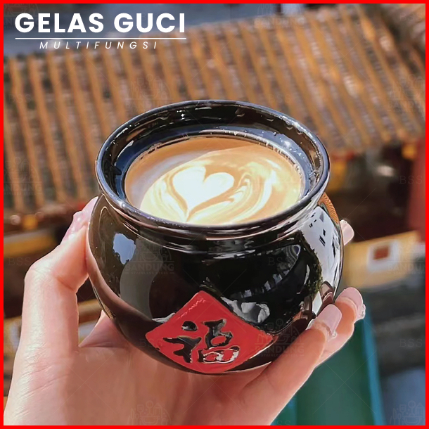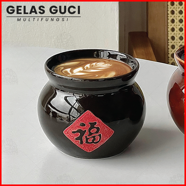 Gelas Coffee Teh Minuman Model Guci Aesthetic 330ml 420ml Keramik Multifungsi Motif Fu Hoki