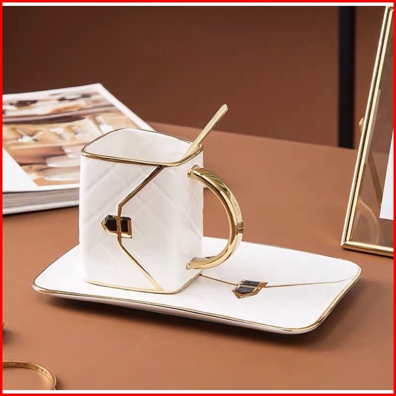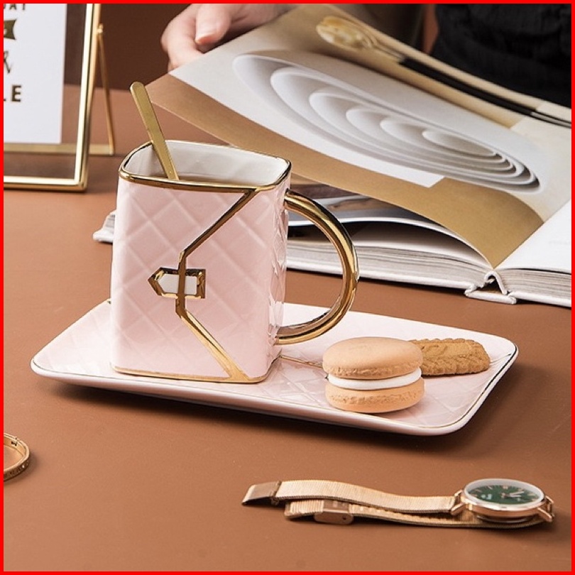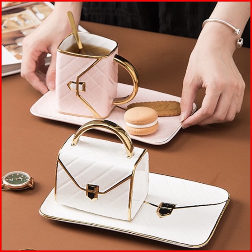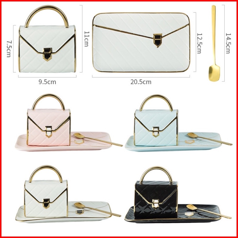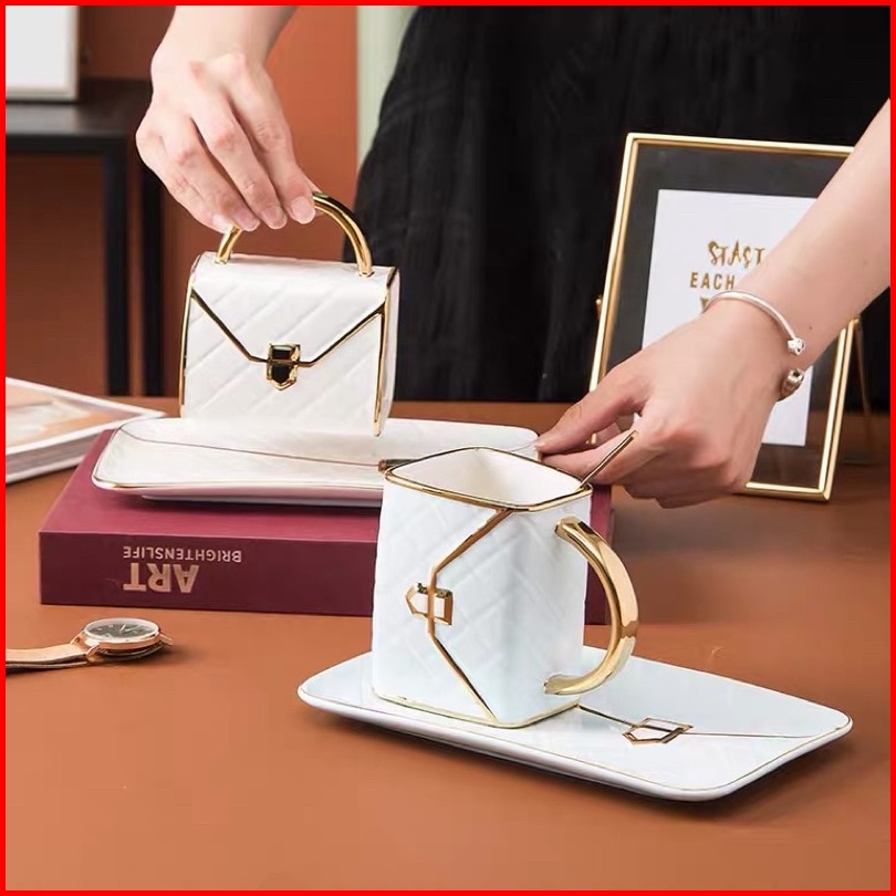 Biana Cup With Tray Cangkir Keramik Cantik Bentuk Tas Mewah