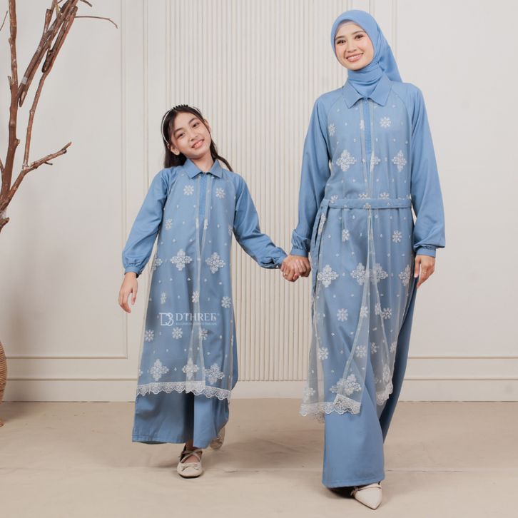 sarimbit couple terbaru Dthree - Sarimbit Keluarga Nameera ( Dusty Blue ) Baju couple keluarga | Sarimbit Lebaran 2026